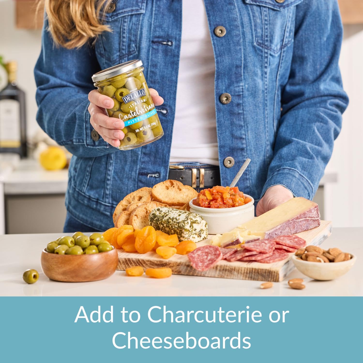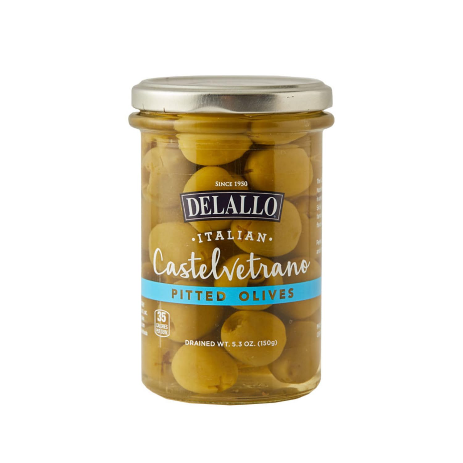 DeLallo Pitted Castelvetrano Green Olives, Naturally Cured, Non-GMO, Kosher, Gluten-Free, Mild Buttery Flavor, 5.3 oz Jar, (6 Pack)