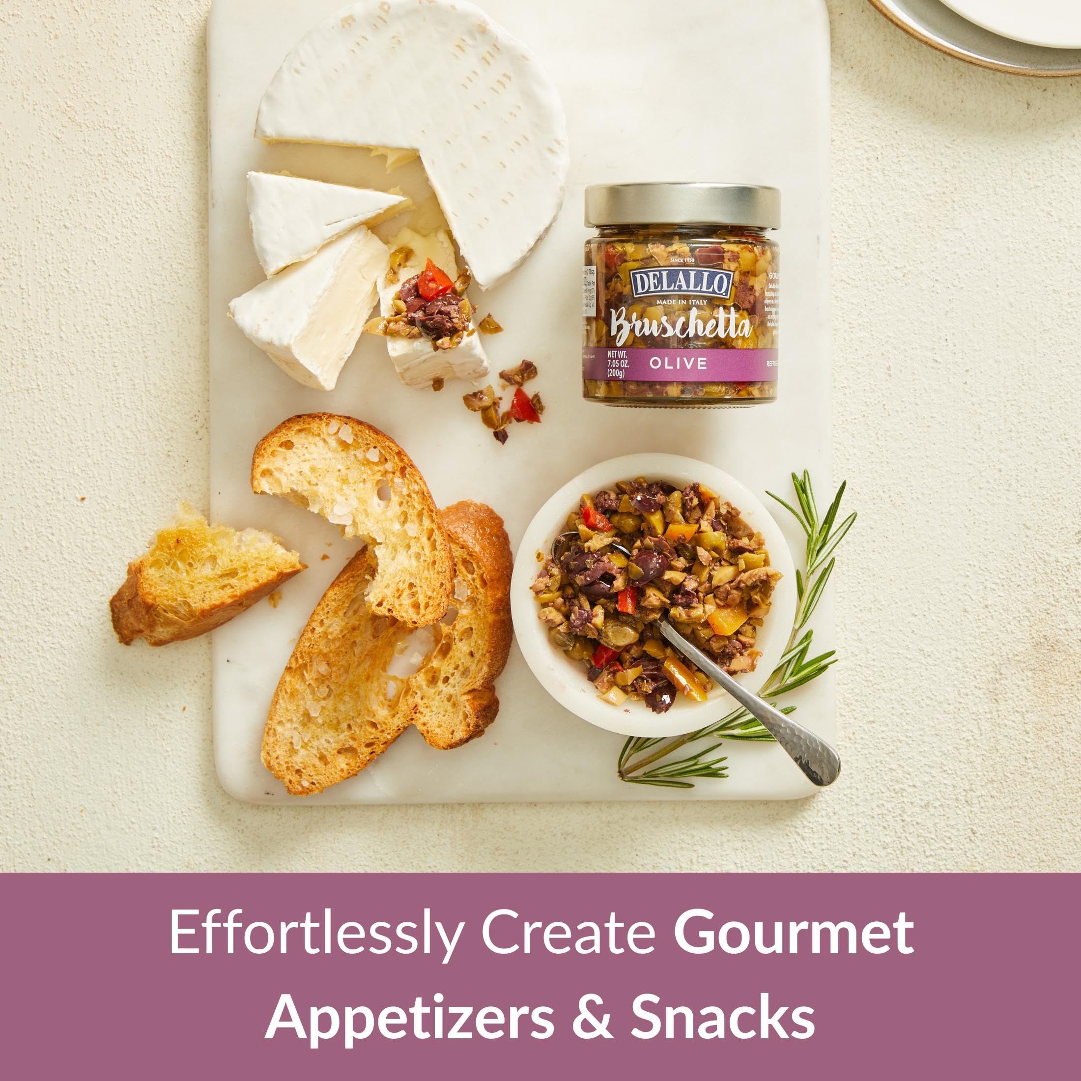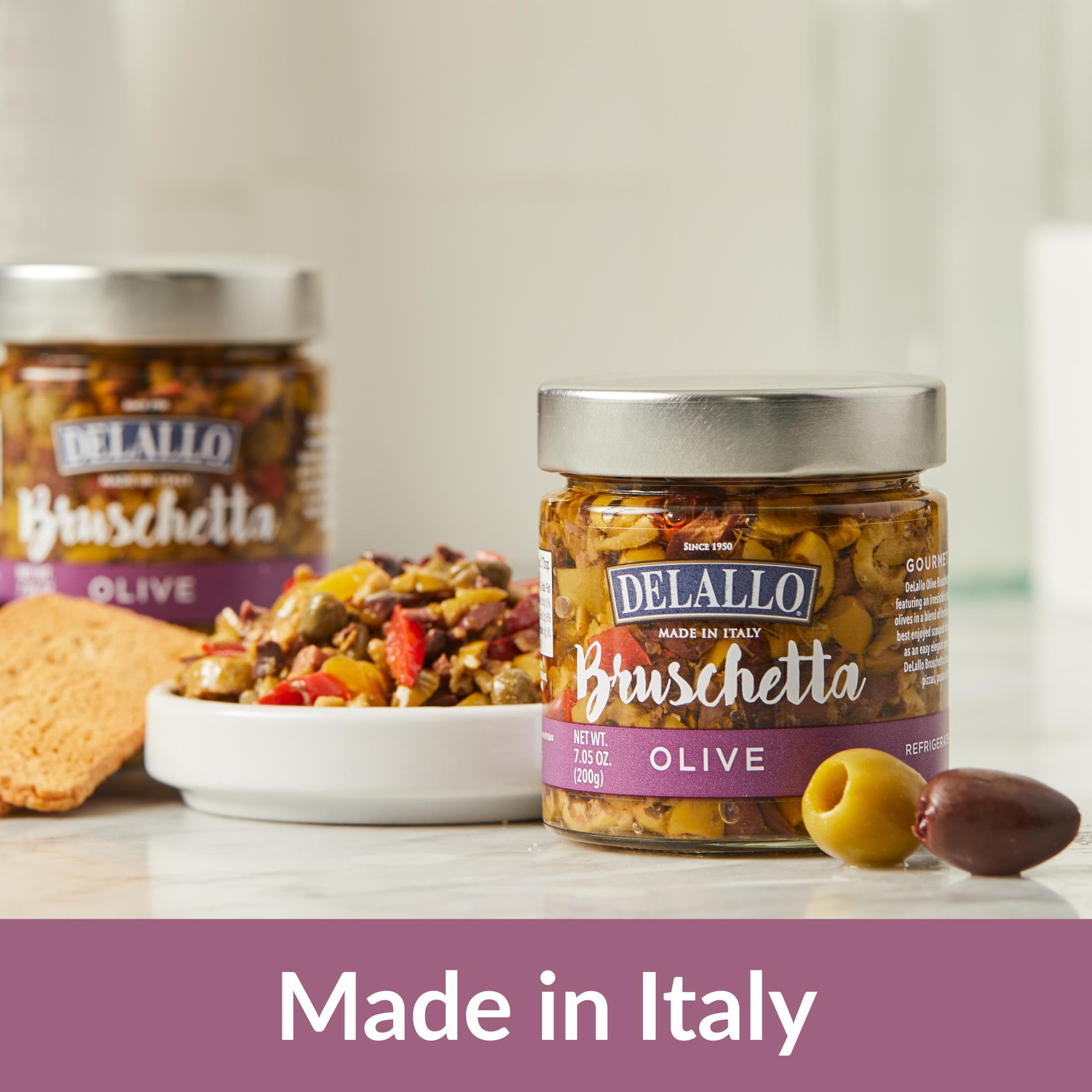 DeLallo Olive Bruschetta, Made with Green and Black Olives, Gourmet Condiment, Ready to Use Ingredient, Made in Italy, Kosher, Non-GMO, Vegan, Gluten-Free, 7.05 oz Jar, (3 Pack)
