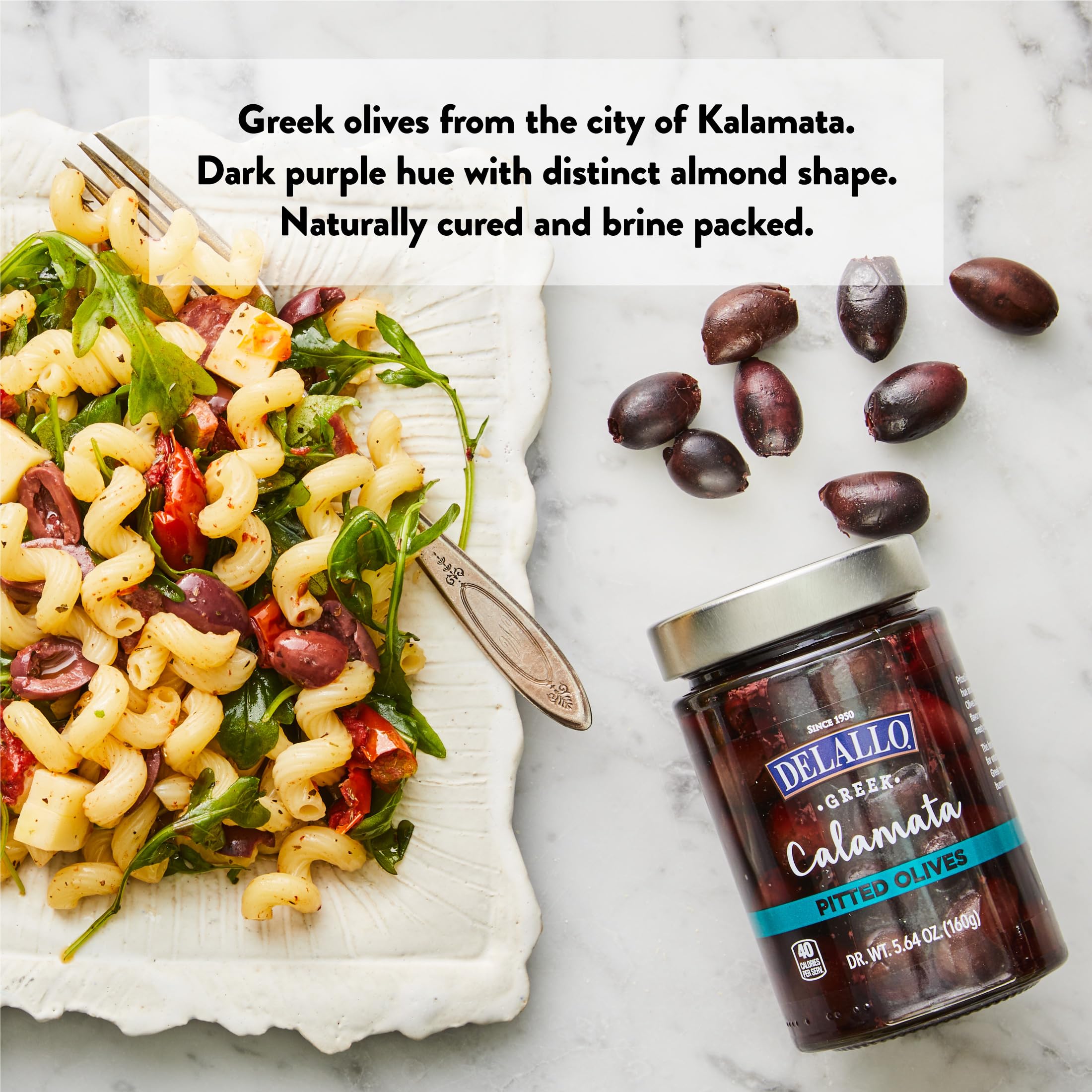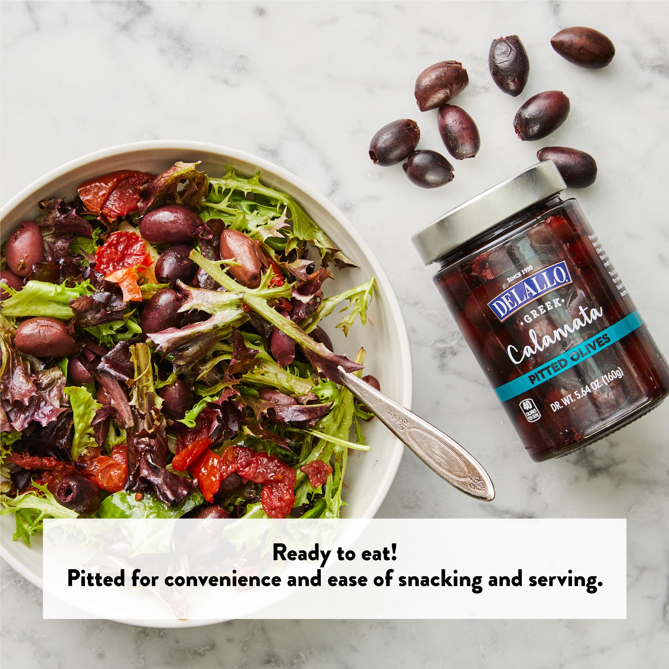DeLallo Pitted Greek Kalamata Olives, 5.64 oz Jar, (6 Pack), Naturally Cured and Brined, Perfect for Snacking and Platters