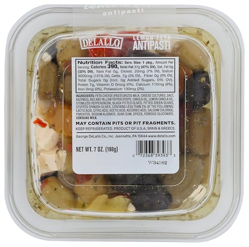 Delallo, Olives Lemon Feta Antipasti In Oil, 7 Ounce