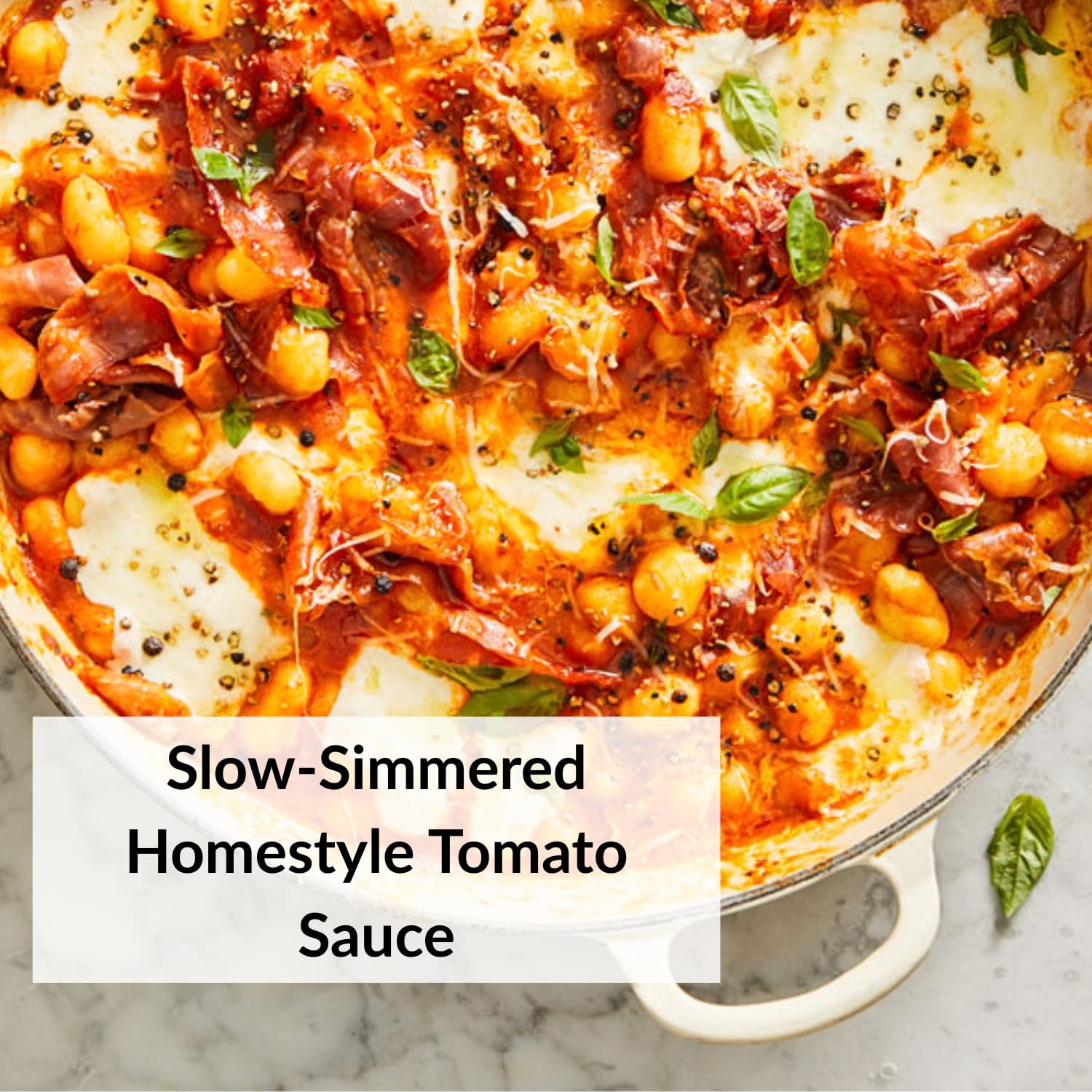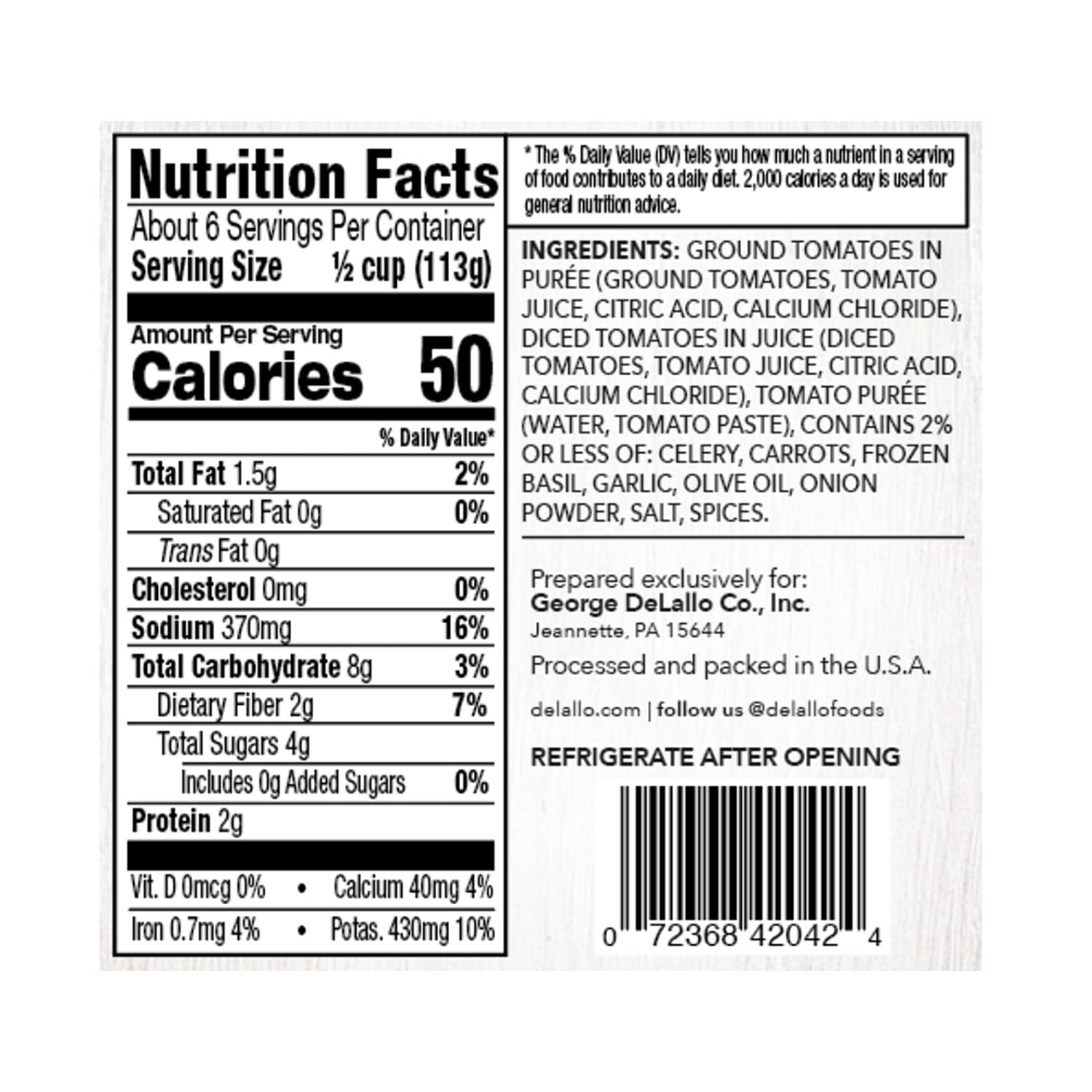 Bring the flavors of Italy to your table with DeLallo Tomato-Basil Sauce, a slow-simmered, homestyle tomato sauce made from our signature Italian recipe. This rich, vibrant red sauce starts with a traditional soffritto—a blend of aromatic vegetables sautéed in olive oil—then layered with sun-ripened Californian Roma tomatoes and sweet, fragrant basil. The result is a well-balanced, herbaceous pasta sauce that tastes homemade. Whether you're preparing a quick weeknight pasta dish or a hearty baked meal like lasagna or ziti, this sauce offers the perfect balance of simplicity and bold flavor. Use it as a base for pizzas and flatbreads, or spoon it over Parmesan-style dishes and stuffed peppers. It also doubles as a delicious dip for fried zucchini, mozzarella sticks, or warm, garlicky breadsticks.