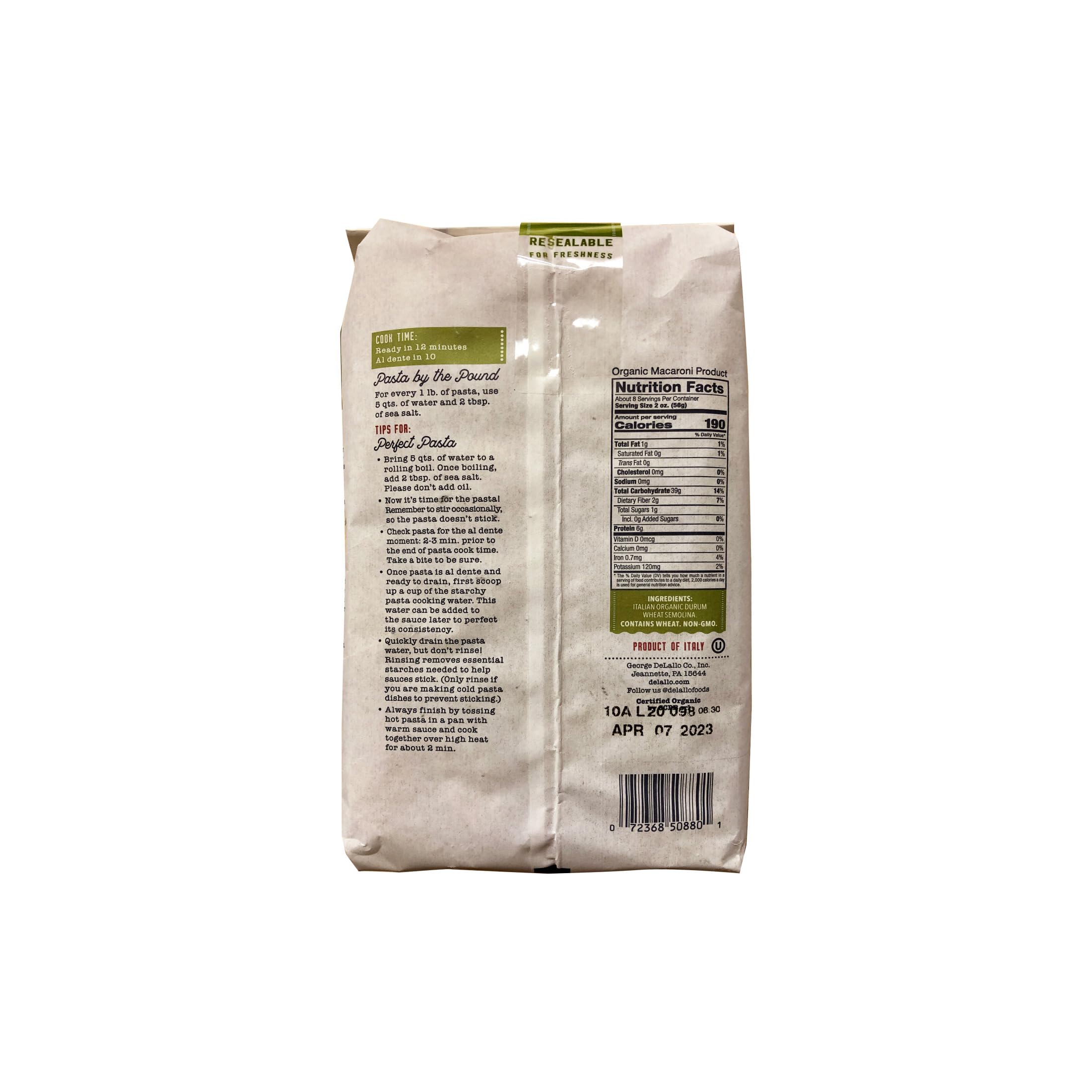 DeLallo Organic Farfalle Pasta, Made with Only 100% Semolina Durum Wheat Flour, Bronze Cut, Made in Italy, Kosher, Vegan, Non-GMO, Bow-Tie Pasta Shape, (16 Pack)