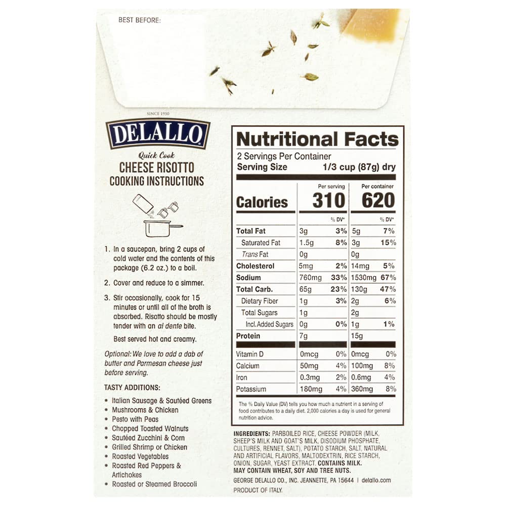DeLallo Quick Cook Cheese Risotto Rice Mix, Made in Italy, Ready in 15 Minutes, Non-GMO, Authentic Italian Recipe, Creamy Texture, Vegetarian, (3 Pack)