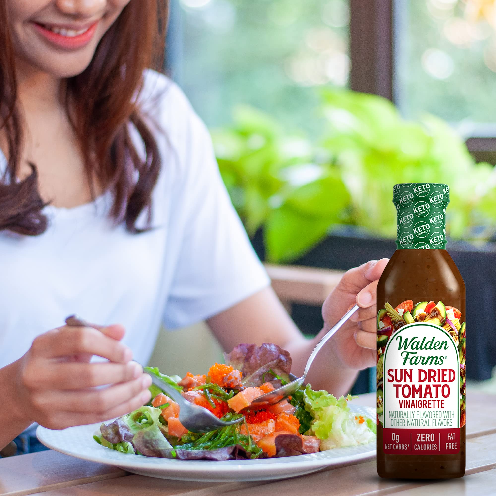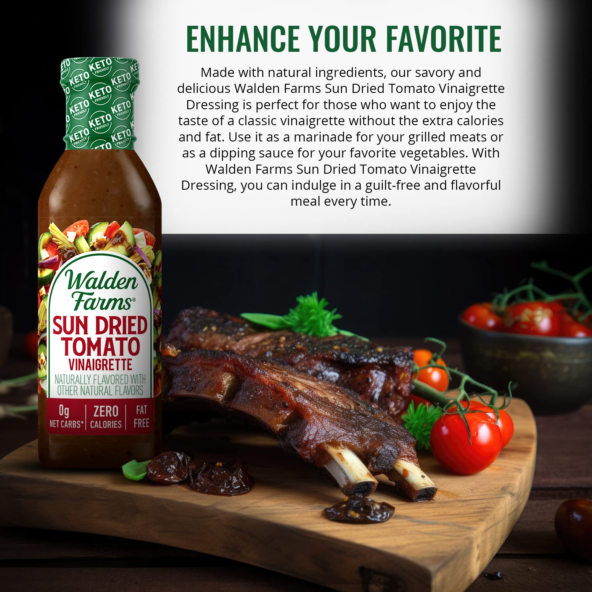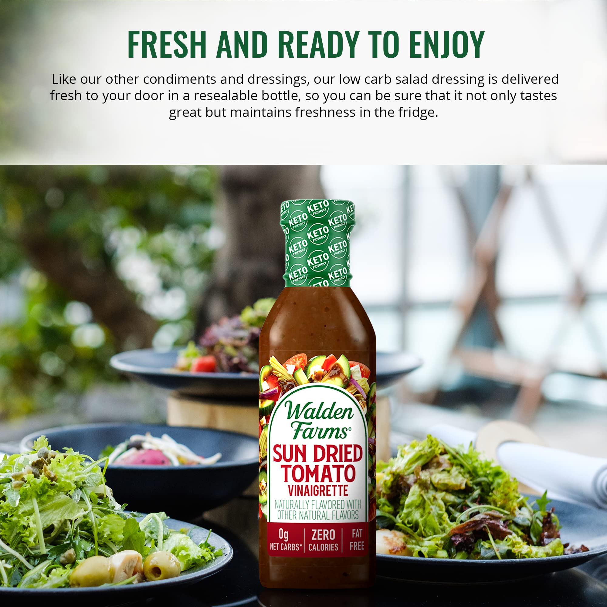 Walden Farms Sun Dried Tomato Vinaigrette Dressing 12 oz Bottle - Sugar Free 0g Net Carbs Condiment - So Tasty on Salad, Grilled Chicken, Vegetables, Marinade Meat or Fish and Many More