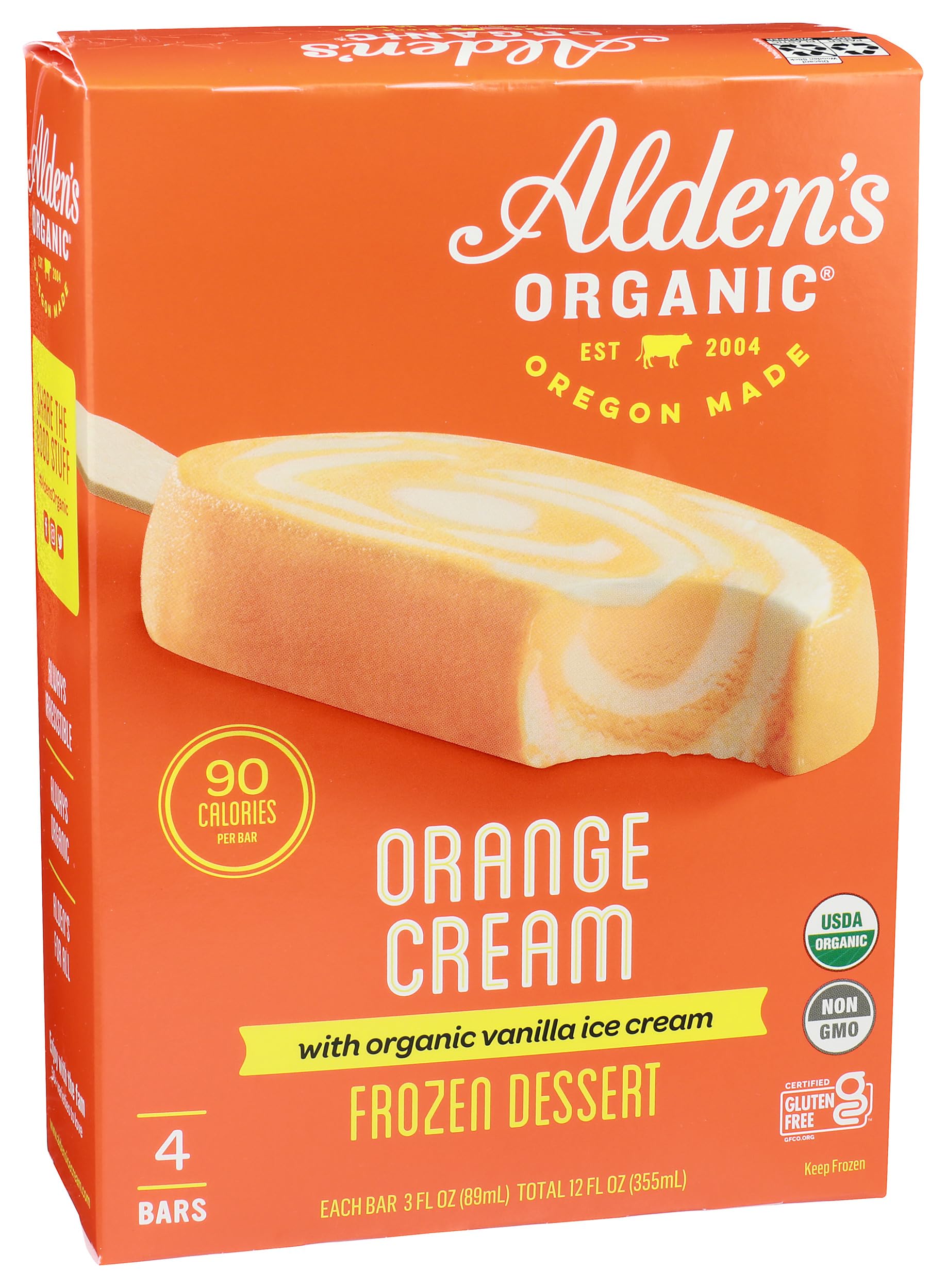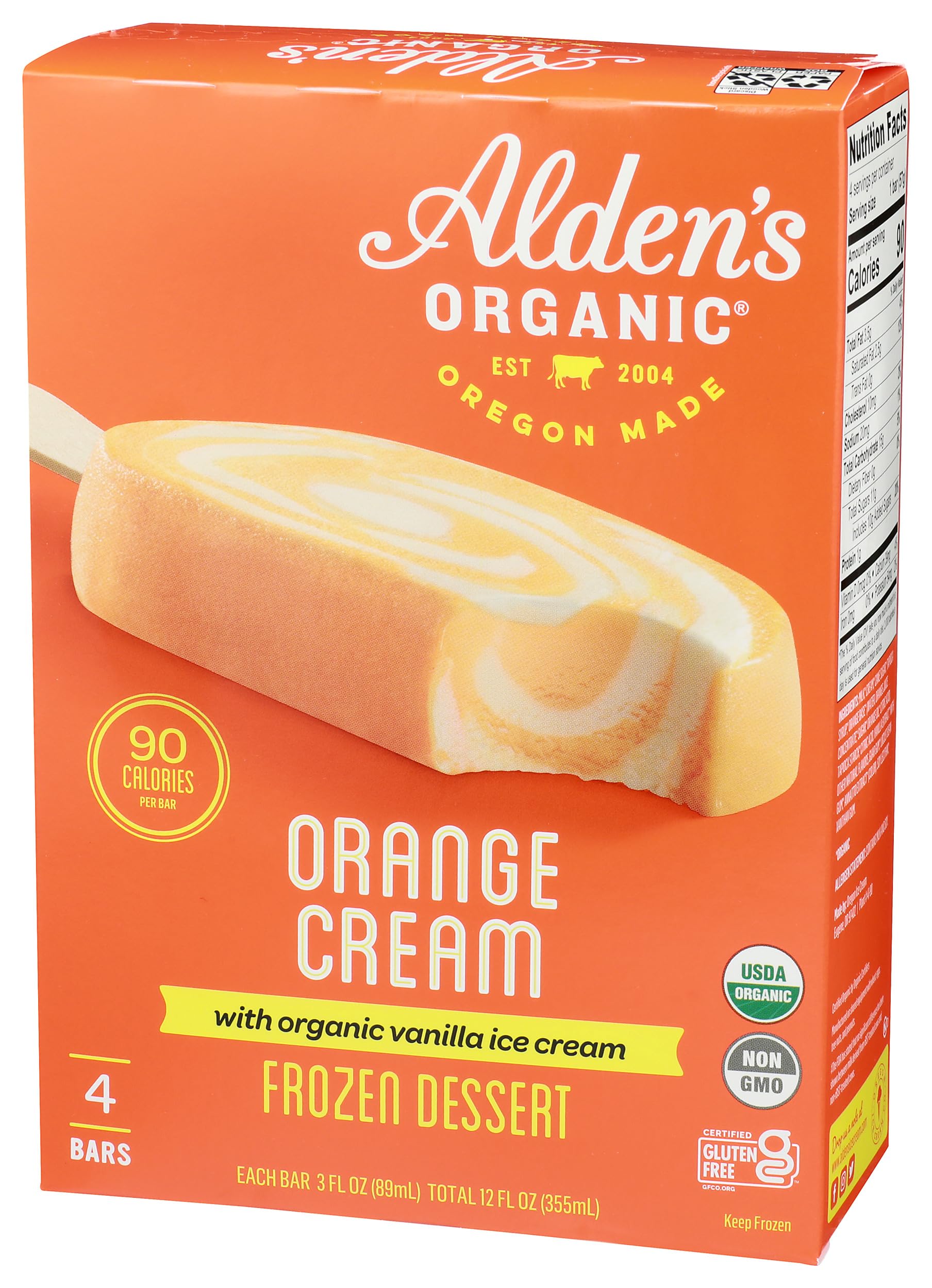 Alden's Organic Fruit Cream Bars, Orange Cream, 12oz 4 ct (frozen)