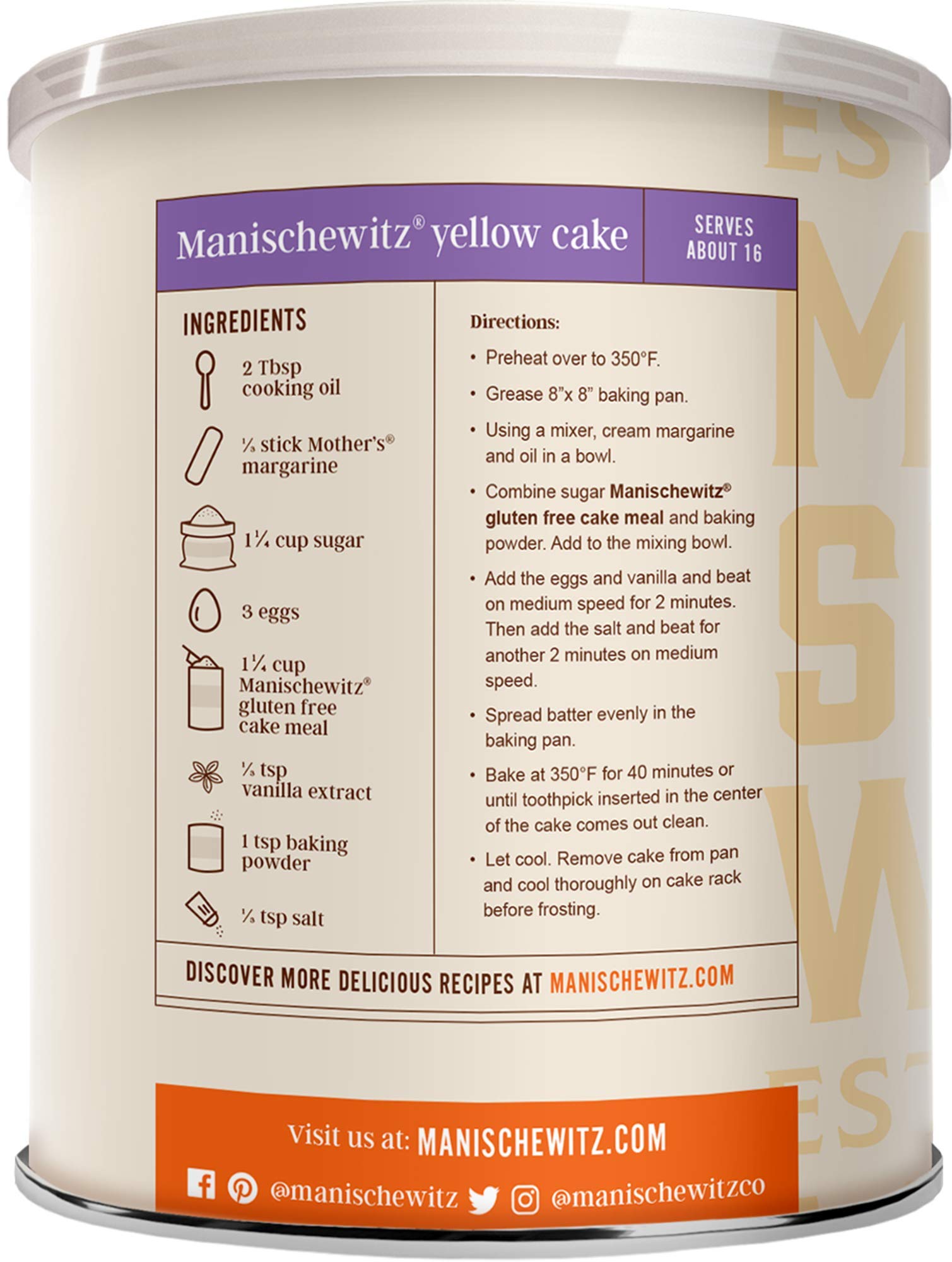 Manischewitz Gluten Free Cake Meal 16oz (2 Pack) Grain Free Cake Meal | Resealable Container| Kosher for Passover