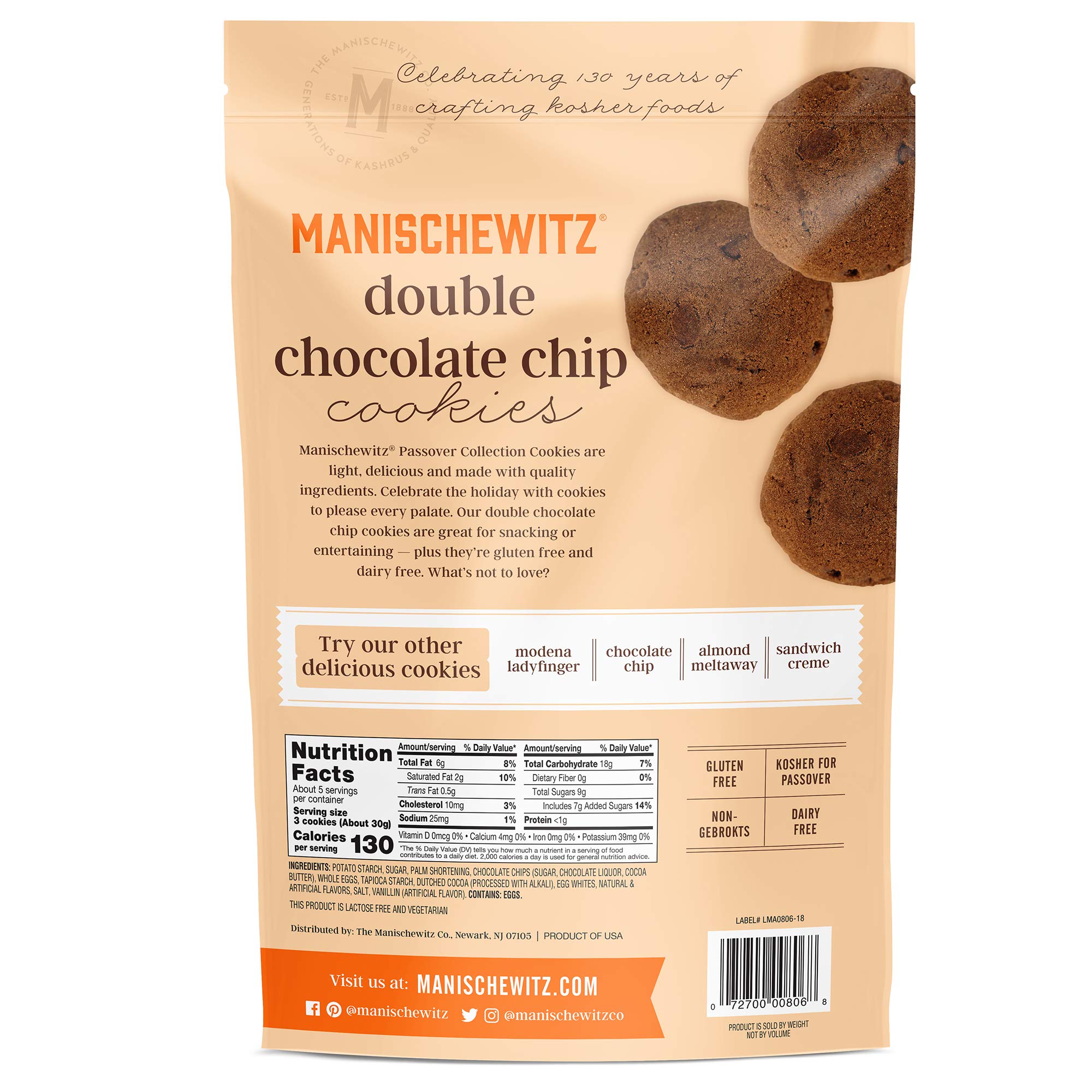 Manischewitz Gluten Free Double Chocolate Chip Cookies 5.5oz (2 Pack), Grain Free, Dairy Free, Kosher for Passover