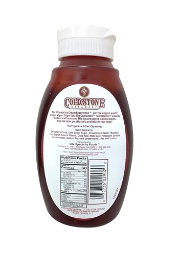 Cold Stone Dessert Topper Strawberry. Recreate that cold stone creamery experience at home. This product is manufactured in United States. Freezing and Chilling Temperature of the product is Ambient: Room Temperature.
