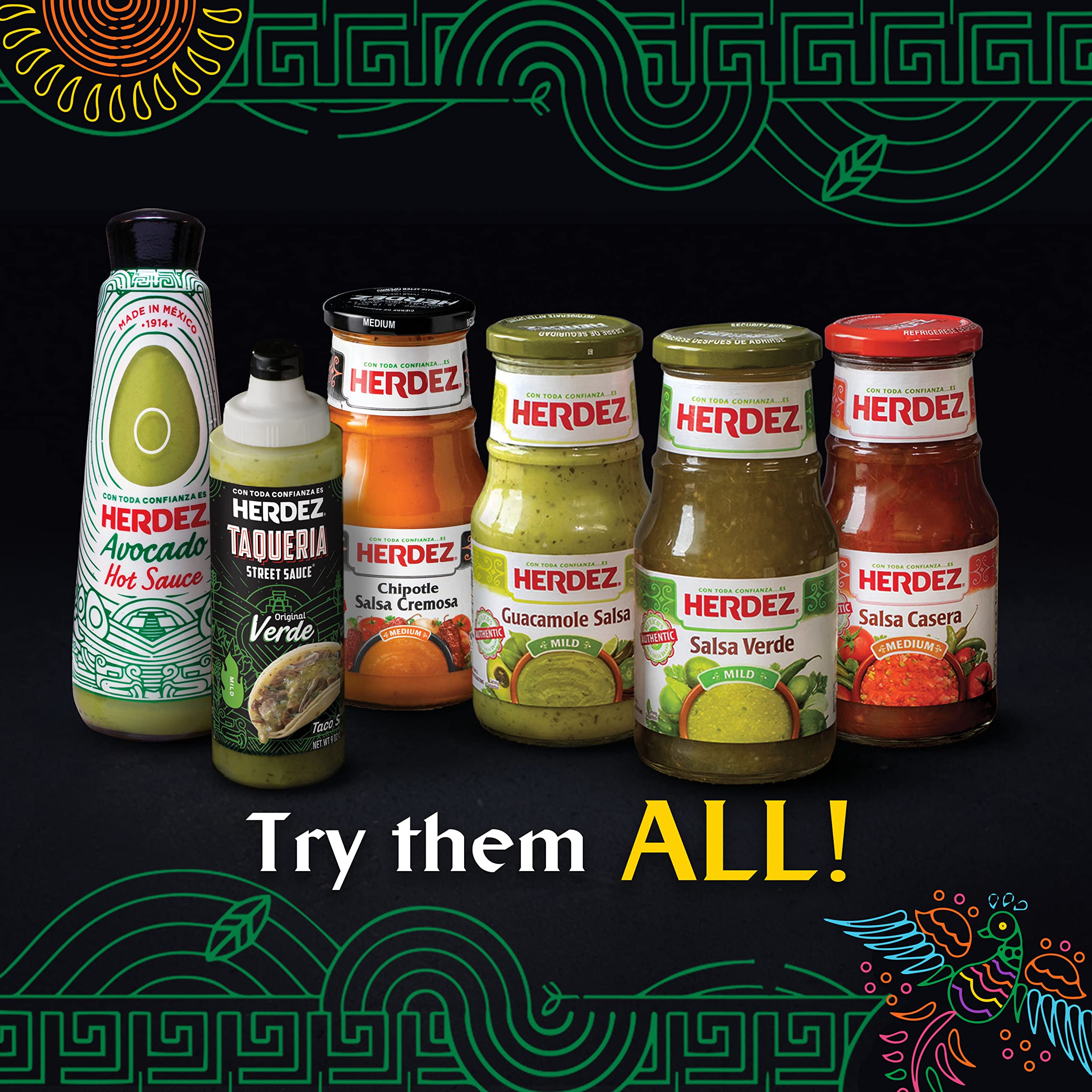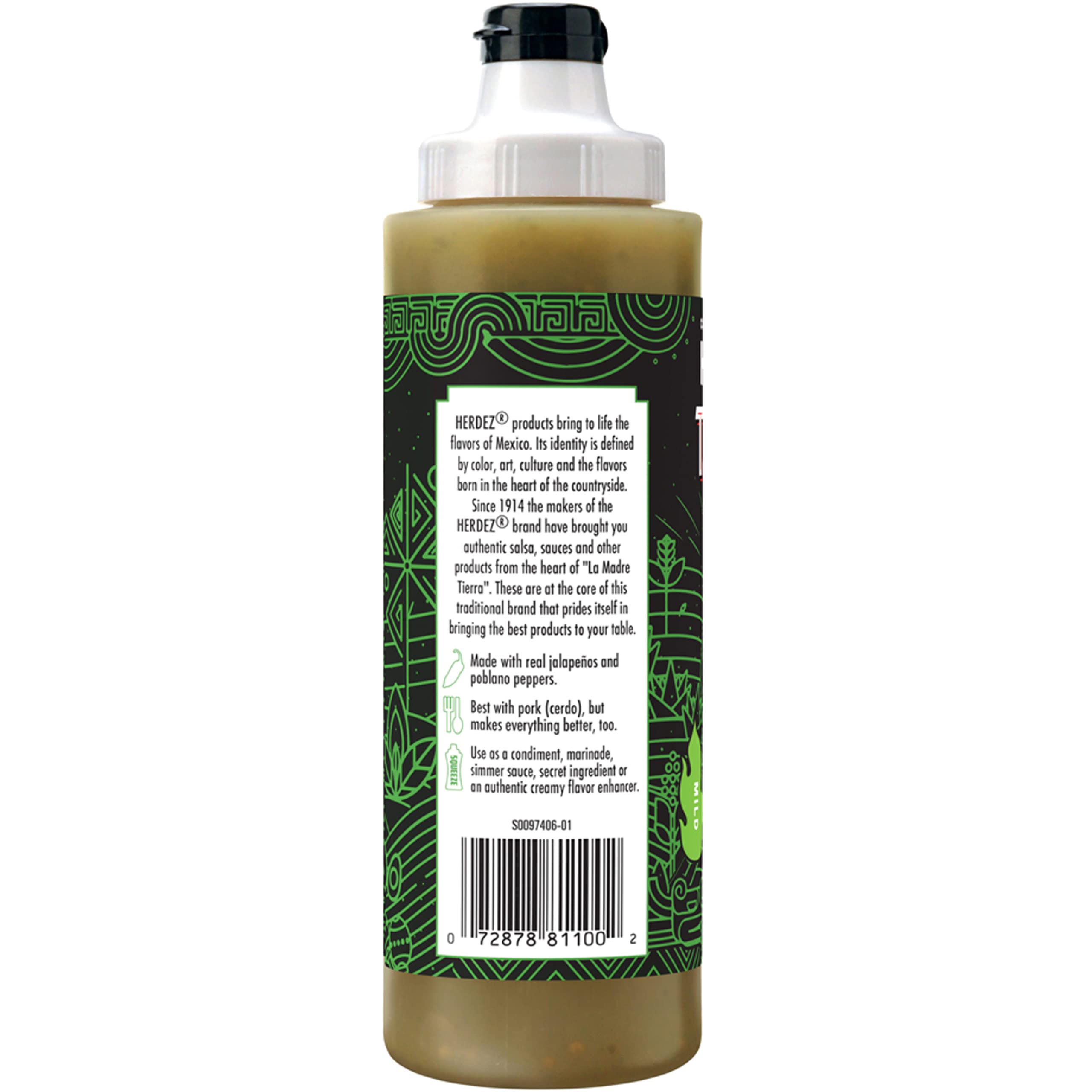 Take bold flavor to the next level with HERDEZ TAQUERIA STREET SAUCE taco sauce. Includes 1, 9-ounce bottle of our original verde sauce made from a recipe of fire-roasted tomatillos, jalapeño peppers, roasted poblano peppers and other delicious ingredients. Use it as a flavorful marinade, simmer sauce, condiment, or topping. Tastes great on traditional Mexican dishes like chicken tacos, beef enchiladas and tamales. Reach for HERDEZ TAQUERIA STREET SAUCE taco sauce to elevate everday favorites such as sliders, pulled pork sandwiches, eggs, breakfast skillets and more. A convenient squeeze bottle makes it easy to add authentic Mexican flavor to breakfast, lunch, dinner or snacks. The HERDEZ brand is the No.1 selling brand of salsa in Mexico. HERDEZ is a trademark of HERDEZ S.A. de C.V. sociedad anonima.