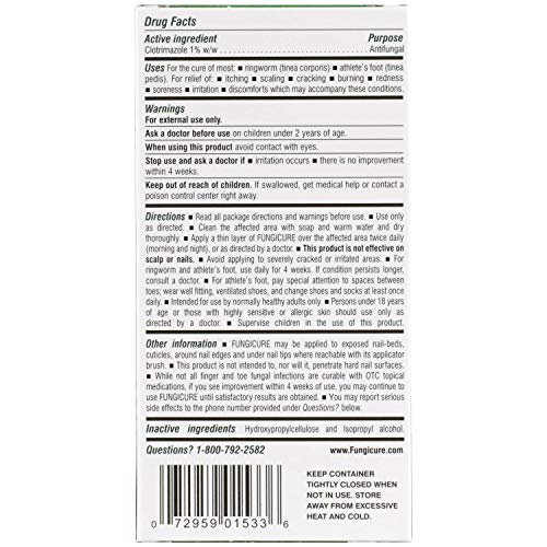 FUNGICURE Maximum Strength Liquid Gel is formulated to work promptly to inhibit the growth and reproduction of fungal cells on fingers and toes, including on skin around nail edges and under nail tips where the fungus can be reached by direct application with the precision FUNGICURE QuickBrush applicator. FUNGICURE's precision QuickBrush applicator allows for easy application right to the site of hard to reach infections, so fingers need never touch affected areas. FUNGICURE Maximum Strength Liquid Gel is crystal clear, dries fast and leaves no unsightly mess or unpleasant medicinal odor.