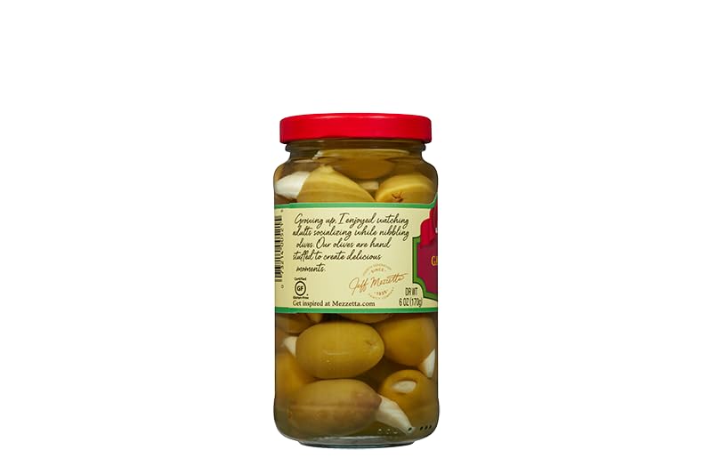 Mezzetta Garlic Stuffed Olives are one of our top-selling items for a reason. Old-World Halkidiki olives pair with freshly picked garlic sourced from just down the road in America's garlic capital, Gilroy, California. Try them sliced on top of grilled steak for savory flavor experience your tastebuds won't soon forget.