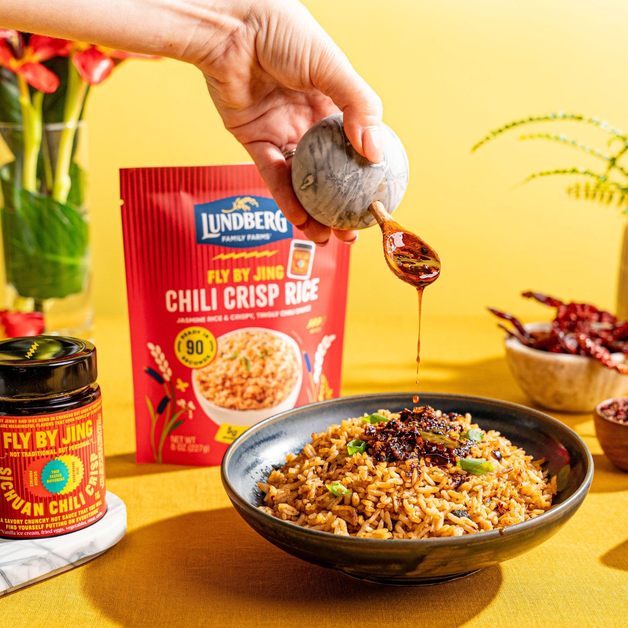 Lundberg x Fly By Jing Chili Crisp Rice is made with premium rice and Fly By Jing’s signature chili crisp, delivering bold and savory flavor. You won’t find any artificial flavors or preservatives here. Vegan, Gluten-Free, and Non-GMO Project Verified, just microwave for 90 seconds and enjoy as a quick meal, a bold side dish, or straight out of the pouch. It’s that good! Since 1937, Lundberg Family Farms has been growing wholesome, great-tasting rice while tending to soil, air, water, and wildlife as carefully as our crops. Some people say we’re a bit unconventional. But doing things our way—sustainably at every step—allows us to make better food for your table while leaving a better world for the next generation. From bold collaborations like Chili Crisp Rice to our 17+ rice varieties, rice cakes, and wholesome snacks, every product is cultivated to maximize flavor and quality. Hungry for more? Look for other great-tasting side dishes and packaged rice varieties from Lundberg Family Farms.