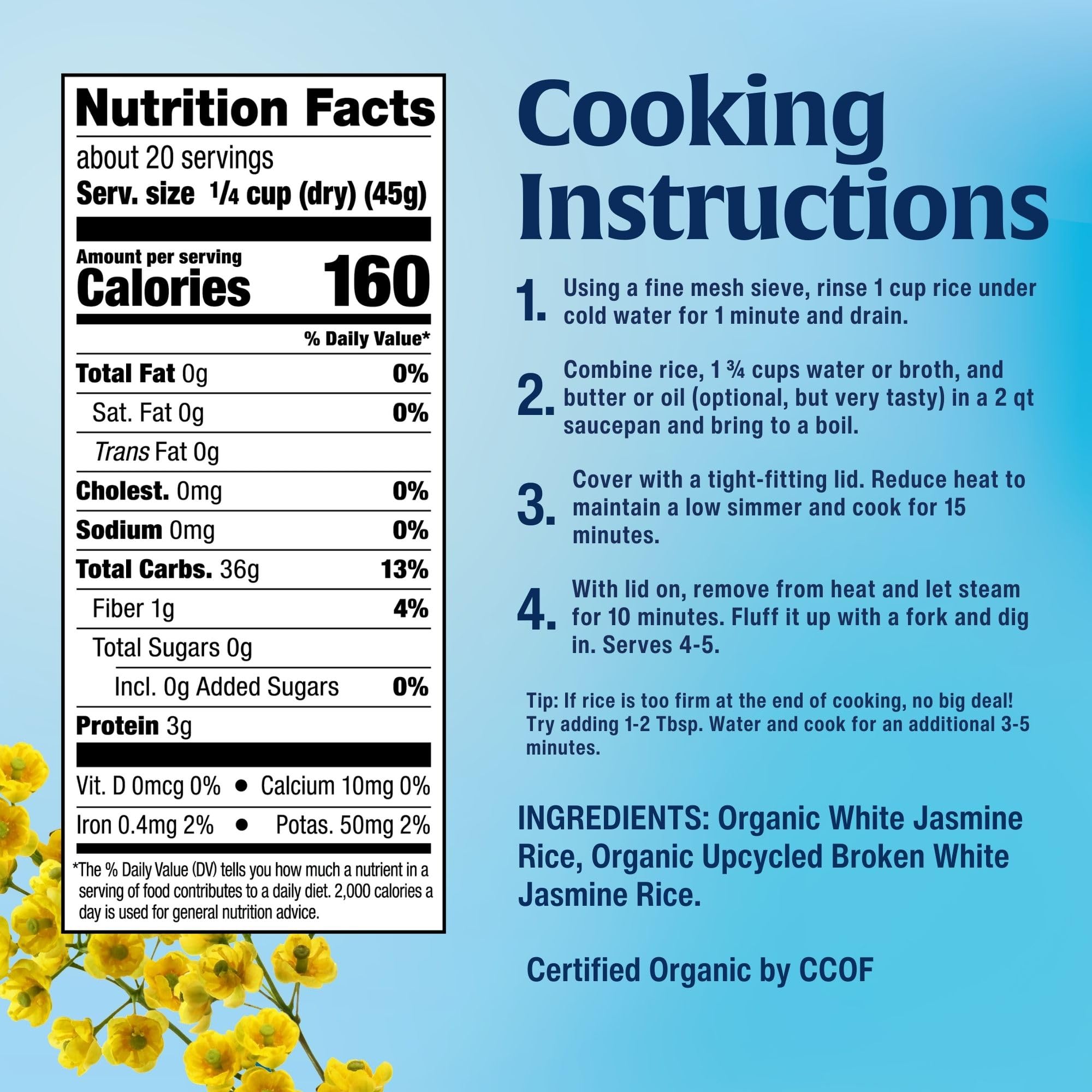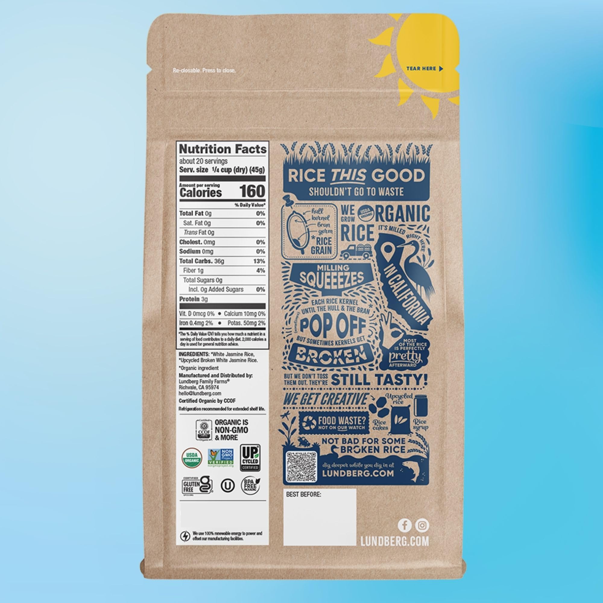 Lundberg Upcycled Organic Jasmine White Rice - Light & Fluffy, Gluten Free, Resealable 2lb Bag (Pack of 1)