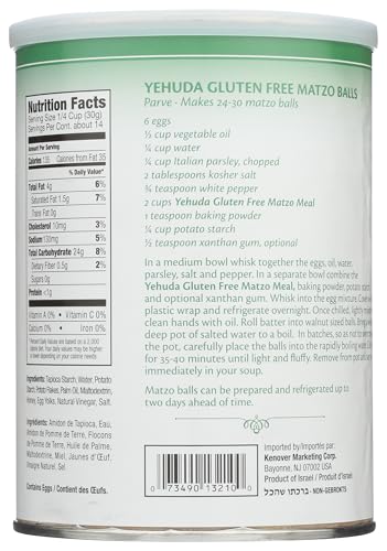 Yehuda gluten free matzo meal is the perfect bread crumb replacement for passive and all year round. Use in all your favorite pies, meat, and chicken dishes! And, don't forget about those knaidlach (matzo meal balls!) Whip up a batch using Yehuda gluten free matzo meal and be treated to a taste of bubby's kitchen! Yehuda's gluten free matzo meal is kosher for Passover and non-gebrokts. Yehuda gluten free matzo meal is perfect for those who desire gluten free products during Passover and all year round. All product bearing the Yehuda name are always made to perfection and this item is no exception!