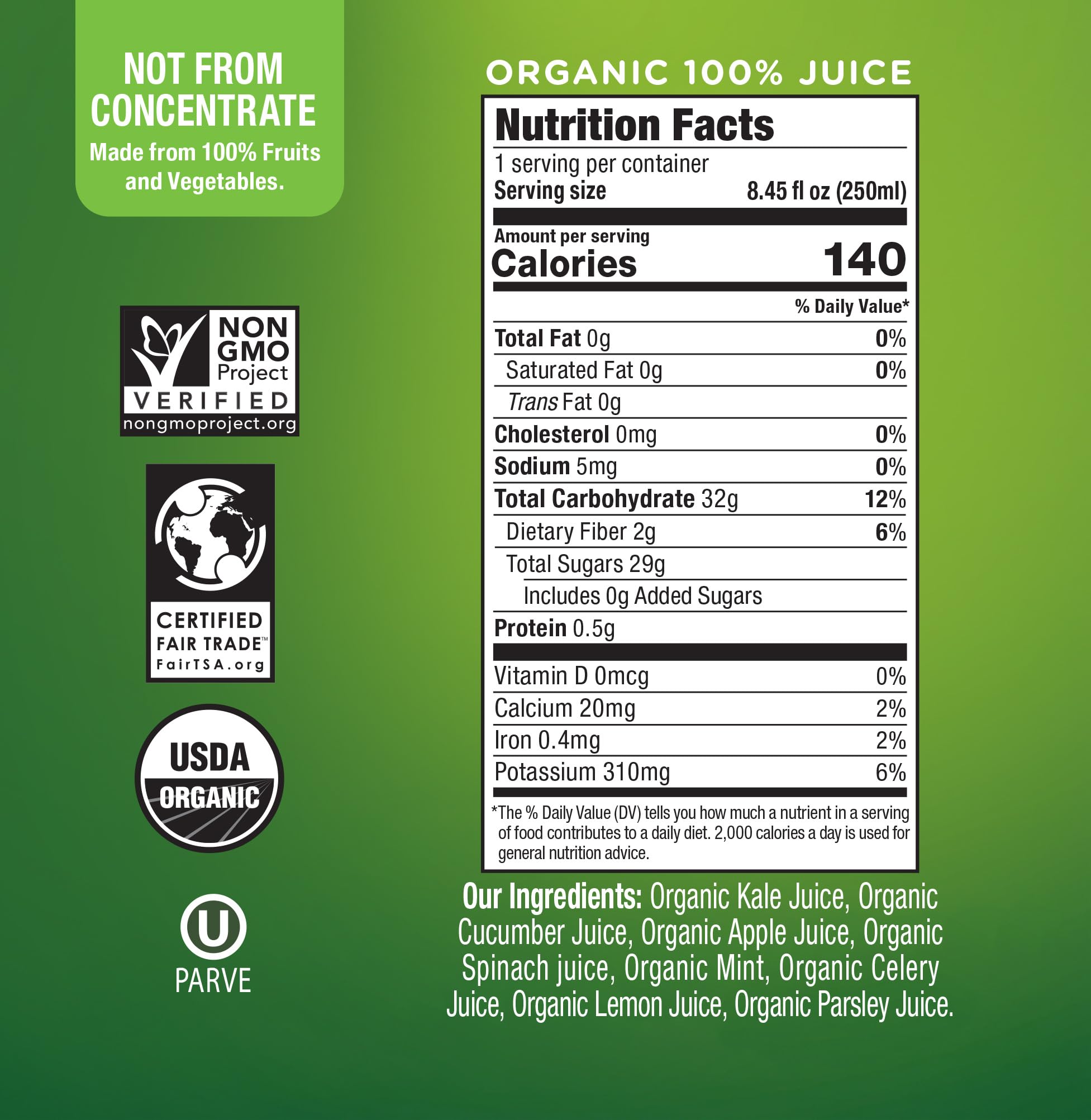 Wonder Green 100% Organic Clean Green Cold Pressed Juice, 8.45 oz (6 Pack) | Kale & Vegetable Juice Blend, All Natural, No Additives or Preservatives, Not from Concentrate