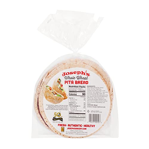 Joseph’s Whole Wheat Pita Bread, 1-Pack, Fresh Baked (4 Pitas per Pack, 11oz.)