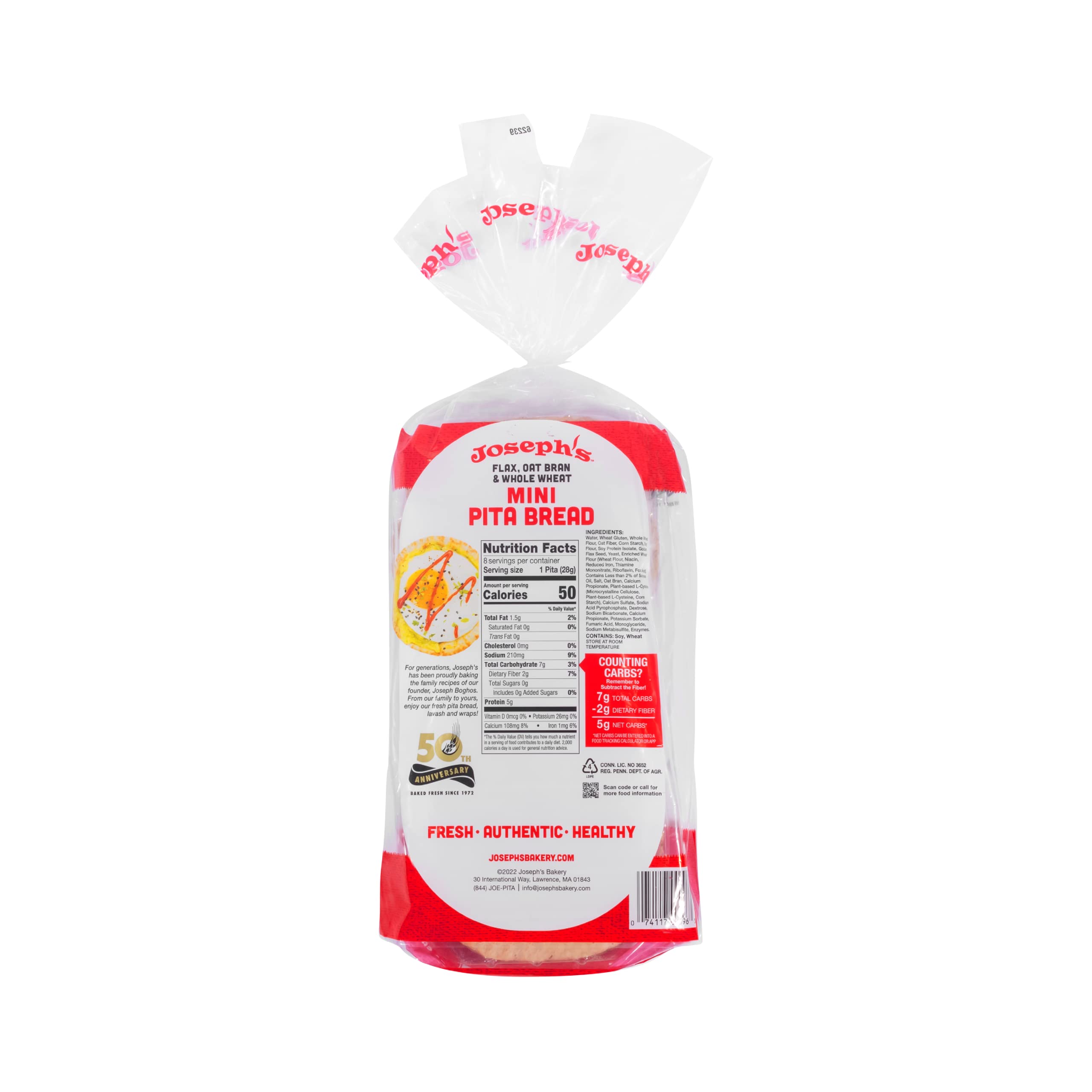 Joseph's Middle East Bakery provides you with a healthy, reduced carb, high protein pita bread with no cholesterol containing three healthy ingredients, oat bran, whole wheat and plant sterols. Plant sterols are a natural nutrient present in small quantities in many fruits, vegetables and grains. Flax Pita Bread is an excellent source of Omega-3.