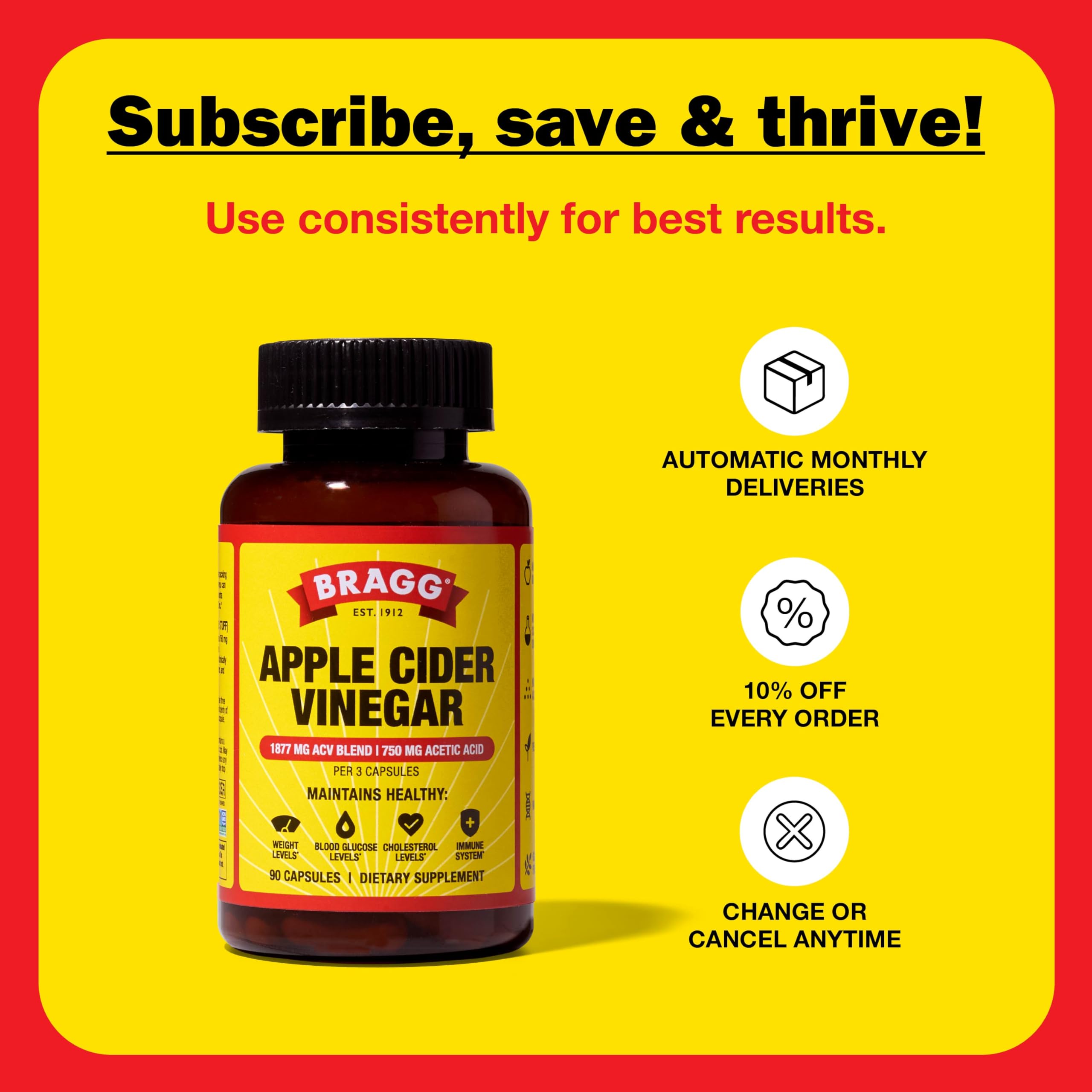 Bragg Organic Apple Cider Vinegar Capsules with Vitamin D and Zinc - 90 Count - Supports Immune System