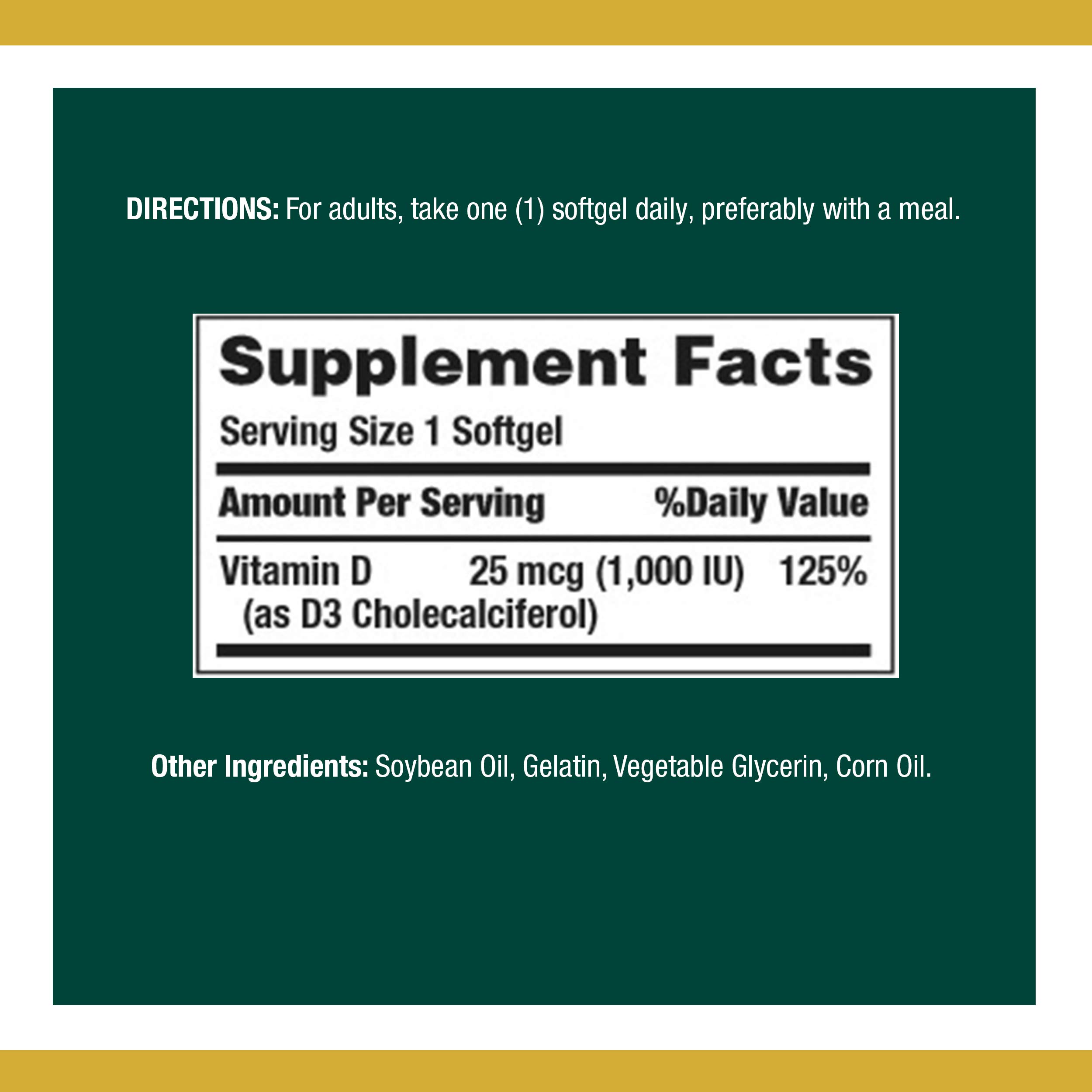 Nature's Bounty Vitamin D3 1000 IU Softgels, 350 Count