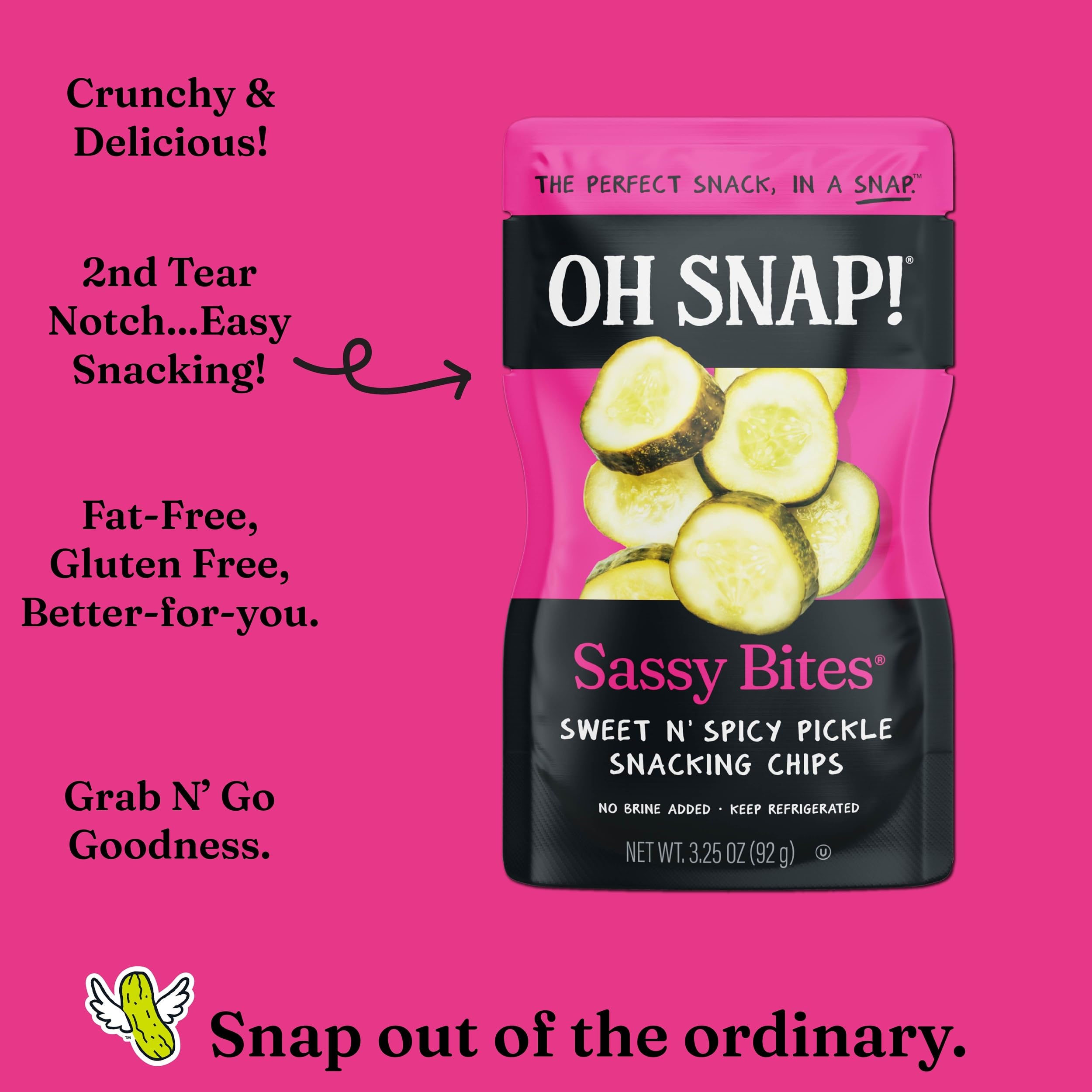 OH SNAP! Sassy Bites (12 Pack) - Sweet Pickle Bites With A Little Kick - Fresh Packed Ready to Eat Sweet & Spicy Pickle - Gluten-Free, Fat-Free, Non-GMO Veggies - Delicious & Healthy Snack