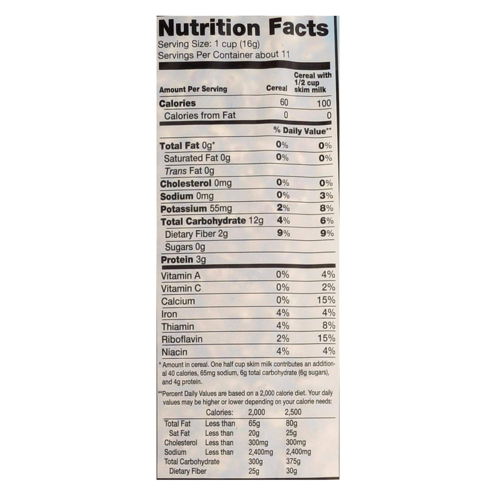 Arrowhead mills natural puffed wheat cereal is a 100% whole grain single ingredient cereal. Foods made from whole grains contain all the essential parts and naturally occurring nutrients of the entire grain seed. Low fat diets rich in whole grain foods and other plant foods may reduce the risk of heart disease and certain cancers. The whole grain goodness of arrowhead mills natural puffed wheat cereal can make a wonderful contribution to your well balanced diet. This product is kosher vegan cholesterol free sodium/salt free and fat free with no added sugar. This bag of arrowhead mills natural puffed wheat cereal contains 6 oz. Of product.country of origin : united statesis gmo free : yesis kosher : yessize : 6 ozpack of : 12selling unit : casekeywords : cholesterol;fat;free;grain;kosher;salt;sodium;vegan;whole
