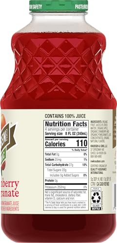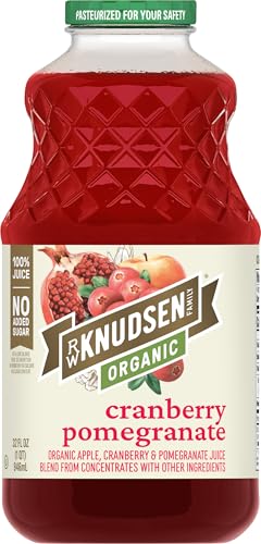 Deep red and tart, every sip of R.W. Knudsen Family Organic Cranberry Pomegranate Juice Blend bursts with cranberry and pomegranate flavor. These flavors combine to create a delicious blend that is Certified USDA Organic Non-GMO Project Verified, and has no sugar added (*Not a low-calorie food. See nutrition information for calorie and sugar content). Whether you're drinking it with breakfast, blending it into a smoothie or cocktail, or freezing it to create a refreshing ice pop, R.W. Knudsen Family Organic Cranberry Pomegranate Juice Blend delivers the delicious taste your family craves.