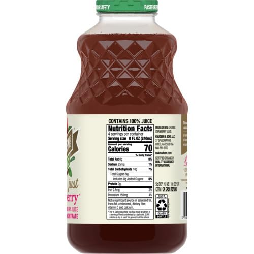 If fruit juice is your quest, look no further than R.W. Knudsen Family Organic Just Cranberry Juice. This single fruit juice gives you the maximum taste of tart cranberries. Not only is this vibrant beverage 100% juice and made with no artificial flavors, but it's also Non-GMO Project Verified and certified USDA Organic. Whether you're having a glass for breakfast, blending it into a fruit smoothie, or using it to top off a seasonal punch or spritzer, R.W. Knudsen Family Organic Just Cranberry Juice is a refreshing drink the whole family will love with no added sugar* (*Not a low calorie food. See nutrition information for calorie and sugar content).