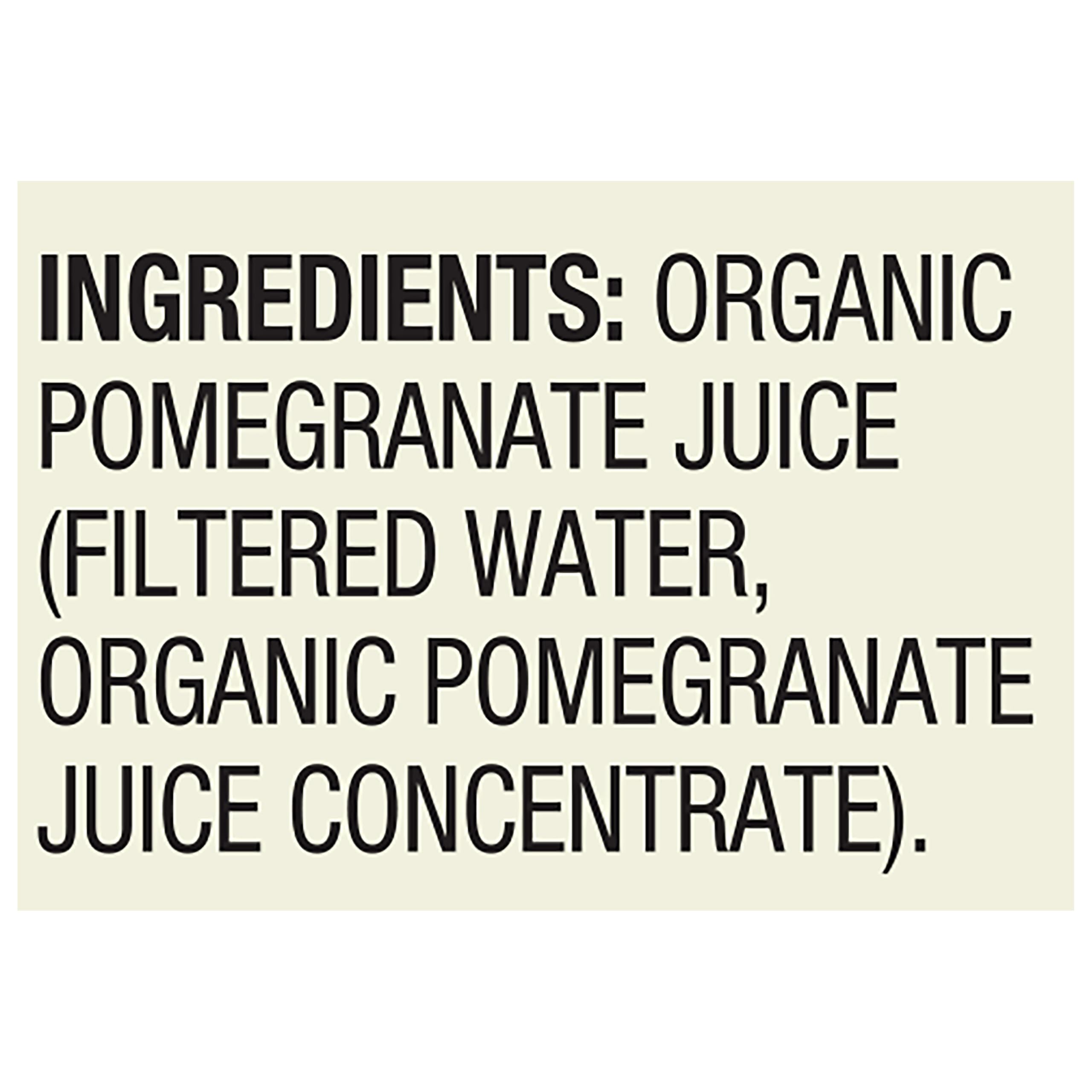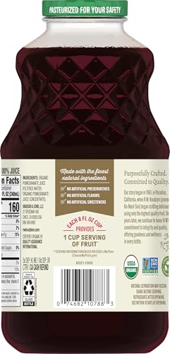 If fruit juice is your quest, look no further than R.W. Knudsen Family Organic Just Pomegranate Juice. This single fruit juice gives you the maximum taste of tart and luscious pomegranates. Not only is this vibrant beverage 100% juice and made with no artificial flavors, but it's also Non-GMO Project Verified and certified USDA Organic. Whether you're having a glass for breakfast, blending it into a fruit smoothie, or using it to top off a seasonal punch or spritzer, R.W. Knudsen Family Organic Just Pomegranate Juice is a refreshing drink the whole family will love with no added sugar* (*Not a low calorie food. See nutrition information for calorie and sugar content).