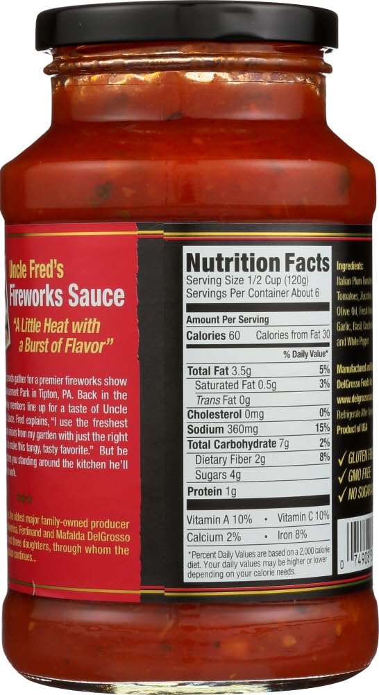 A little heat with burst of flavor! Premium All Natural Pasta Sauce. There is ORGANIC SUGAR and it's GLUTEN FREE!Pack Size: 6/26 OZ
