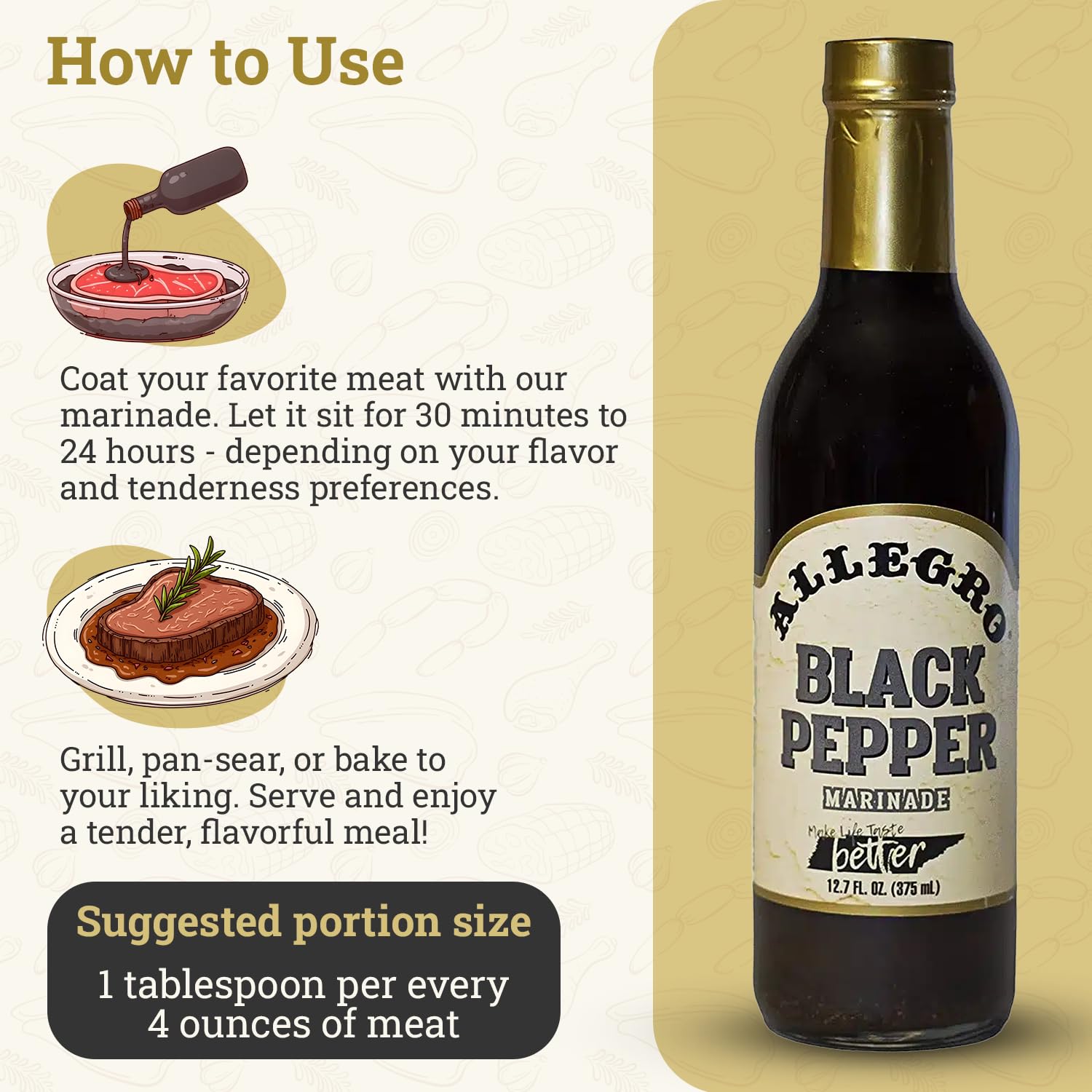 ALLEGRO - The Marinate Everything Marinades | Perfect Marinades for Meat & Veggies | Marinade for Grilling, Roasting & Cooking | Kosher & Gluten Free | 12.7 Oz (Pack of 2) - Black Pepper