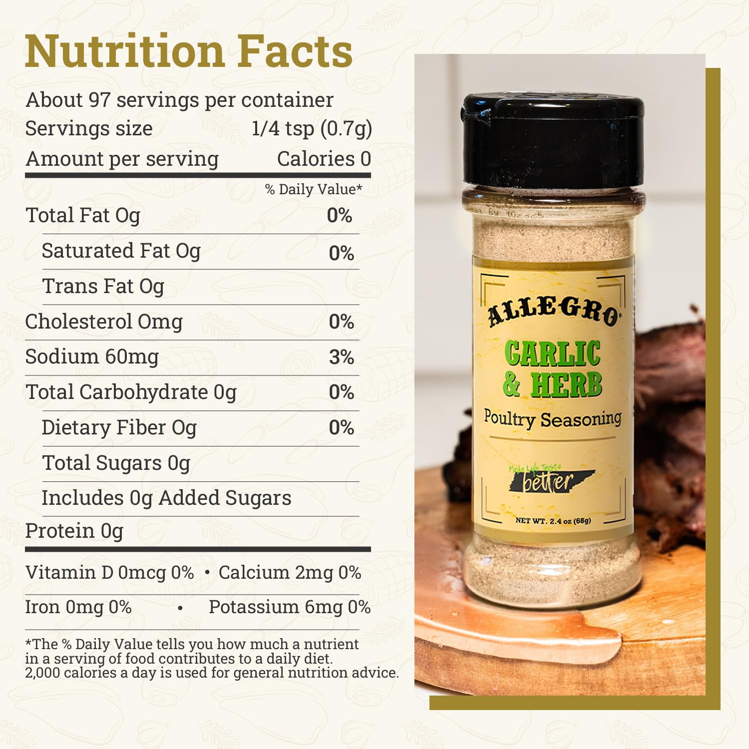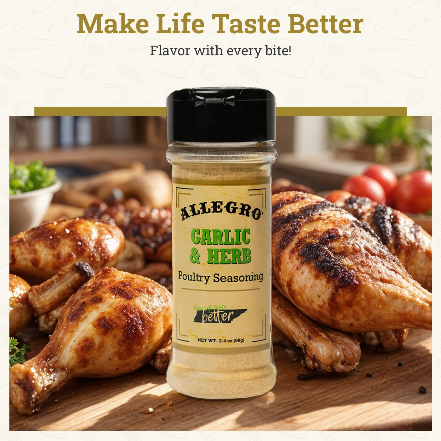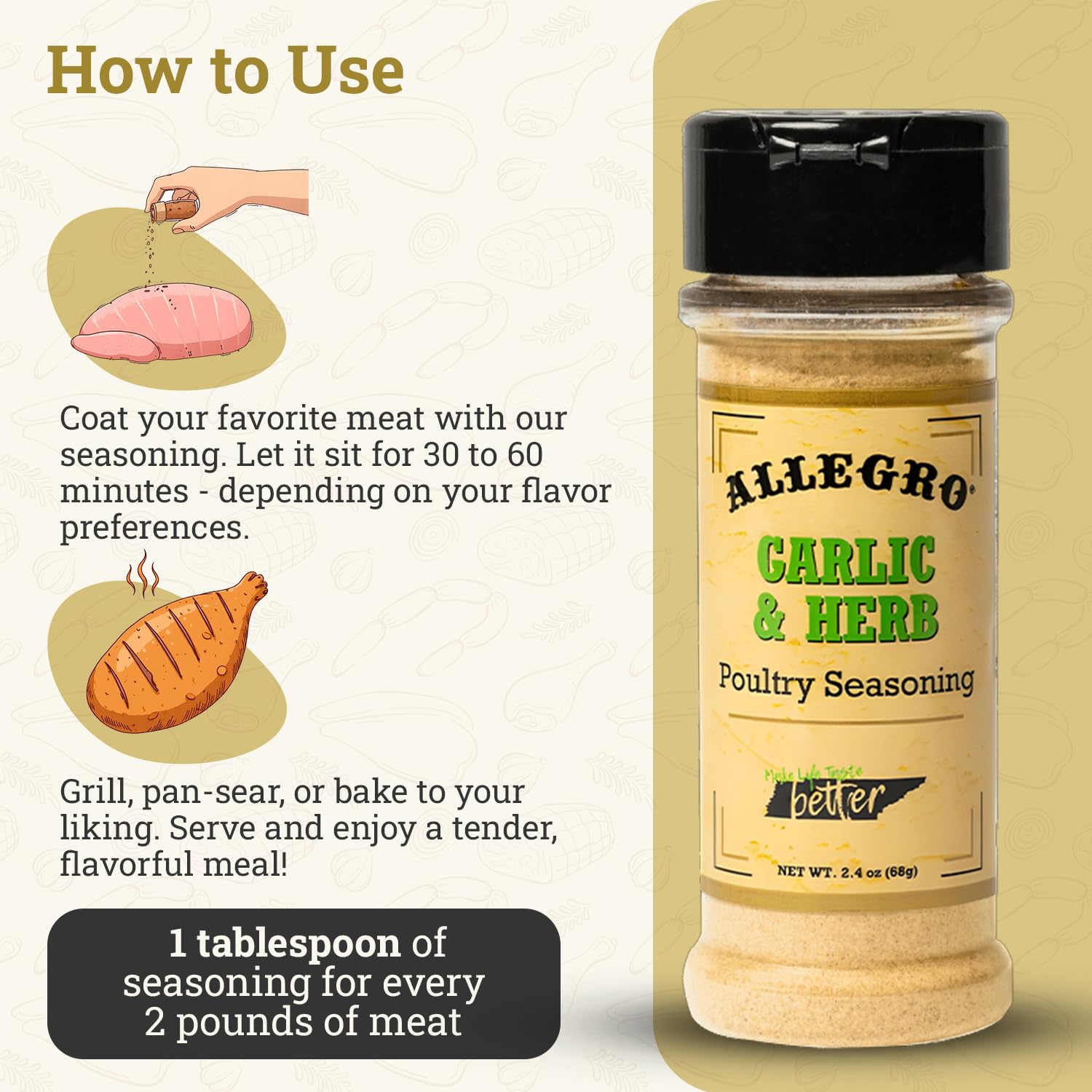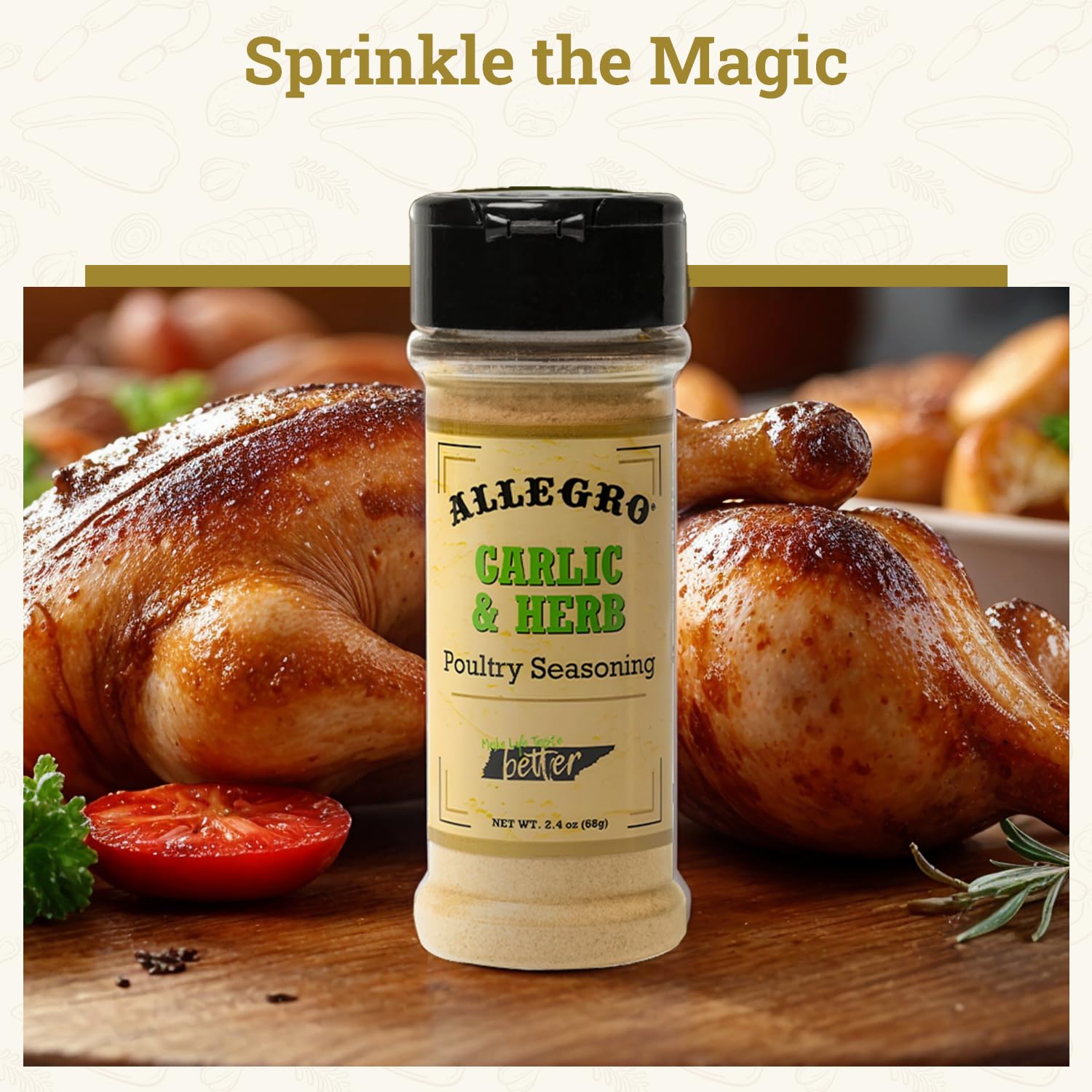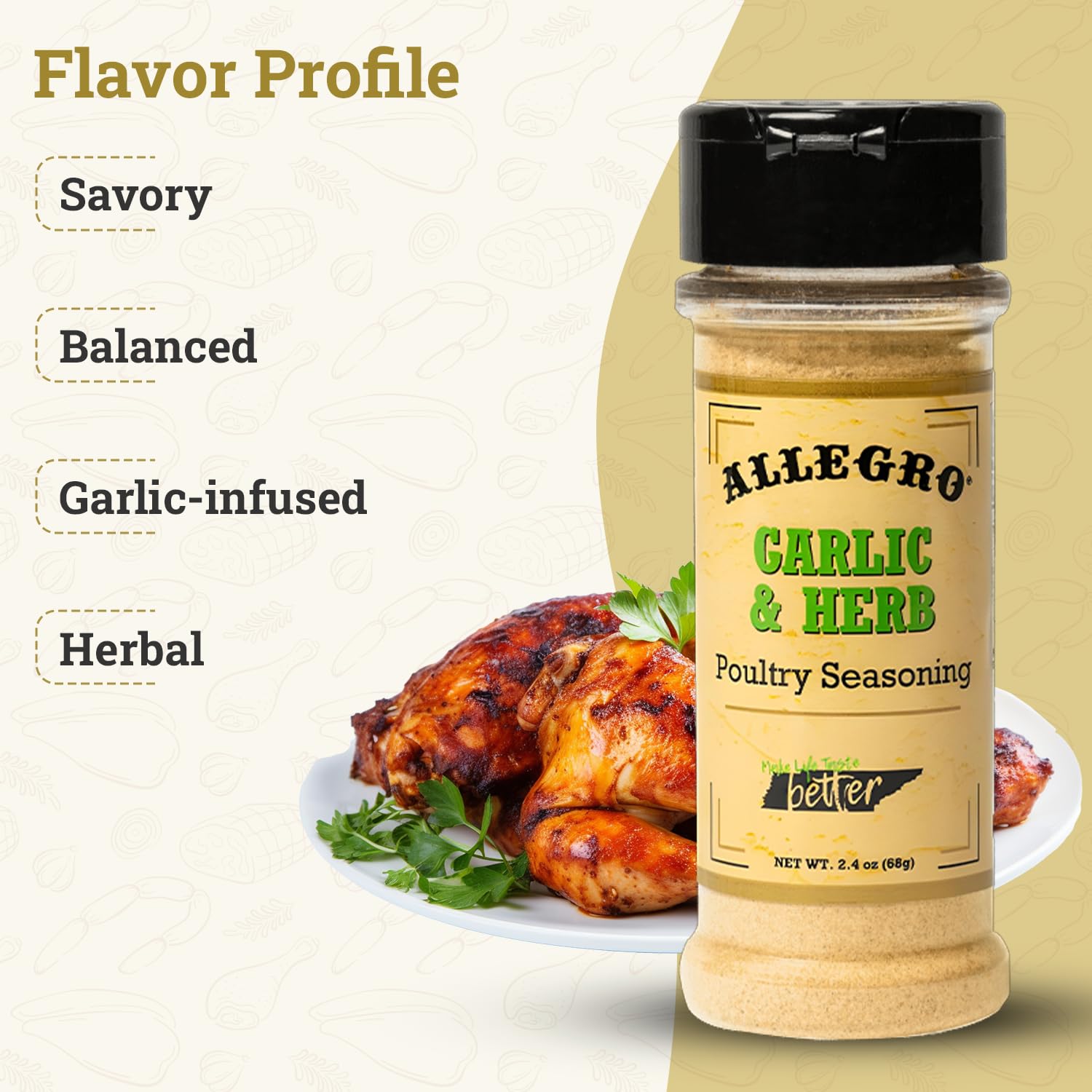 ALLEGRO - The Marinate Everything Marinades| Perfect Seasoning for Chicken, Pork, and Vegetables| Seasonings for Grilling, Roasting, and Cooking| 2.4 Oz (Pack of 1) - Garlic & Herb Poultry Seasoning