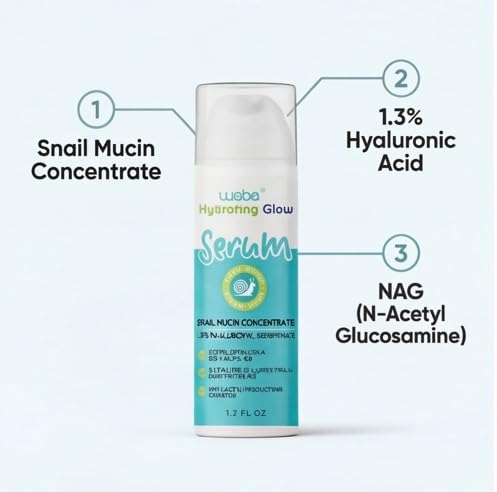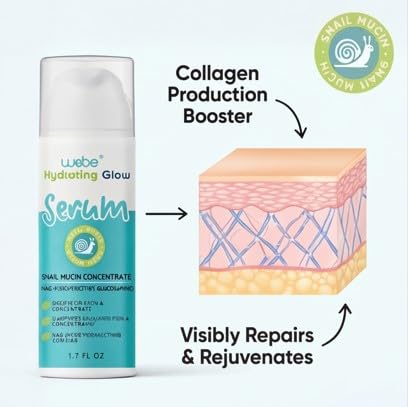WEBE Naturals Snail Mucin 94% Hydrating Glow Serum | 1.3% Hyaluronic Acid & N-Acetyl Glucosamine | Collagen Boosting, Plumping, Anti Aging, Intense Moisturizing Serum for Radiant, Dewy Skin