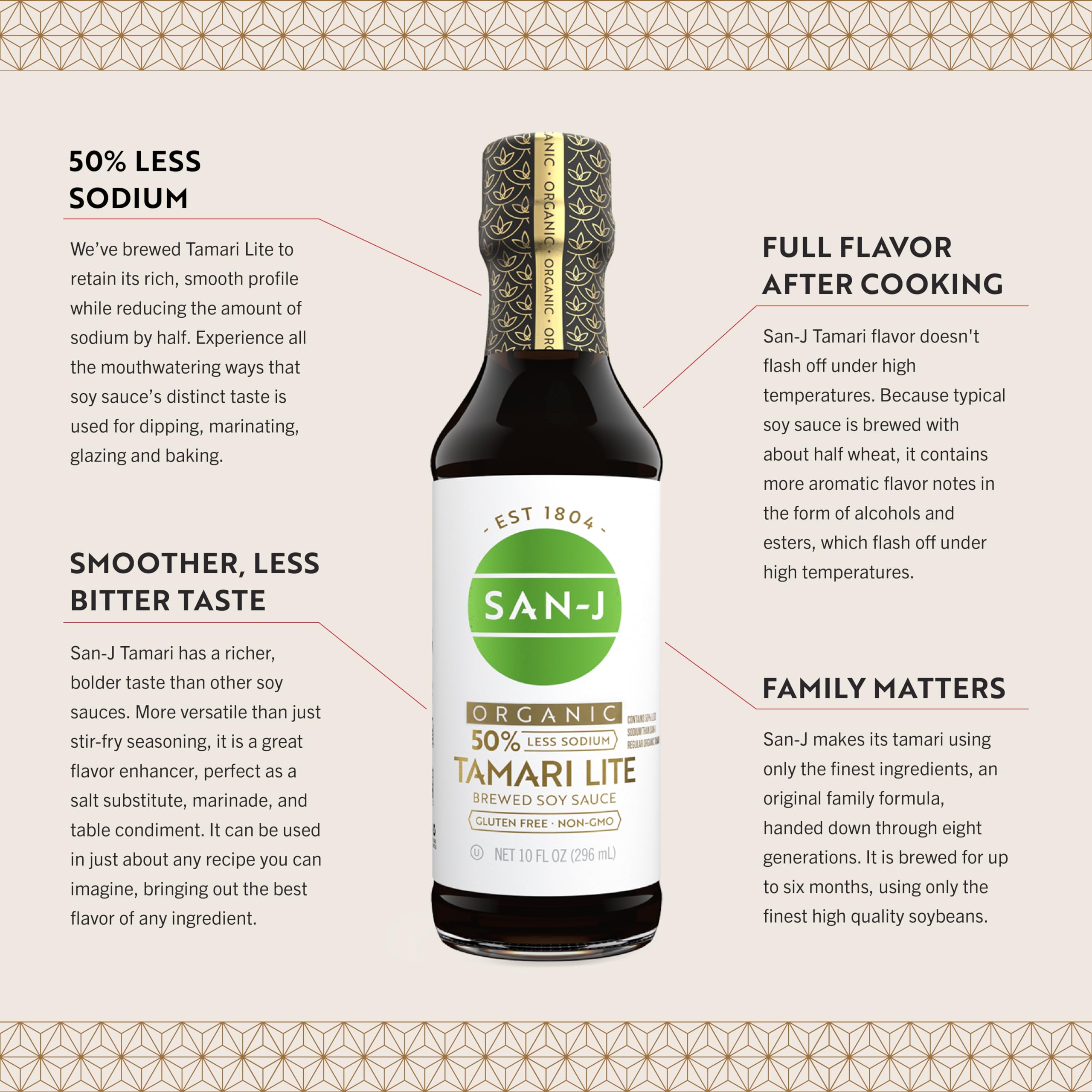 San-J - Organic Gluten Free Tamari Soy Sauce with 50% Less Sodium - Made with 100% Whole Soy - Specially Brewed - 10 oz. Bottle
