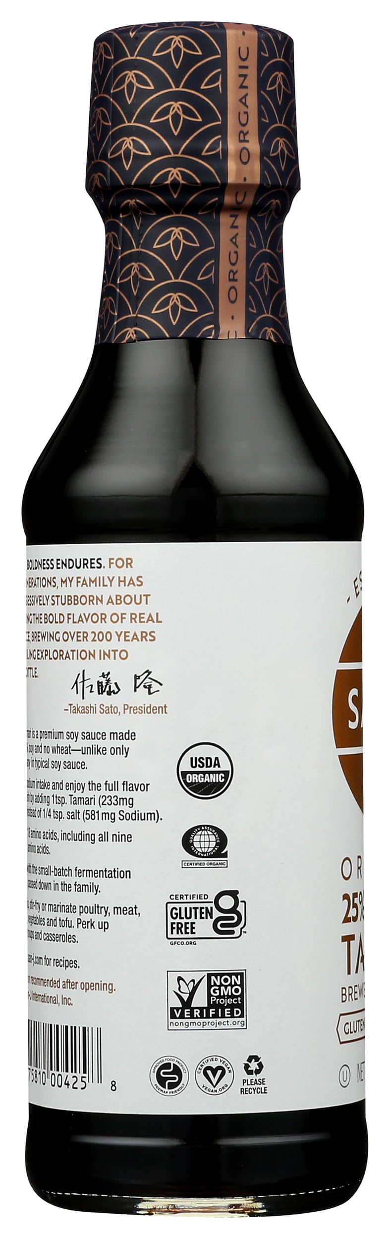 San-J - Organic Gluten Free Tamari Soy Sauce with 25% Less Sodium - Specially Brewed - Made with 100% Whole Soy - 10 oz. Bottle