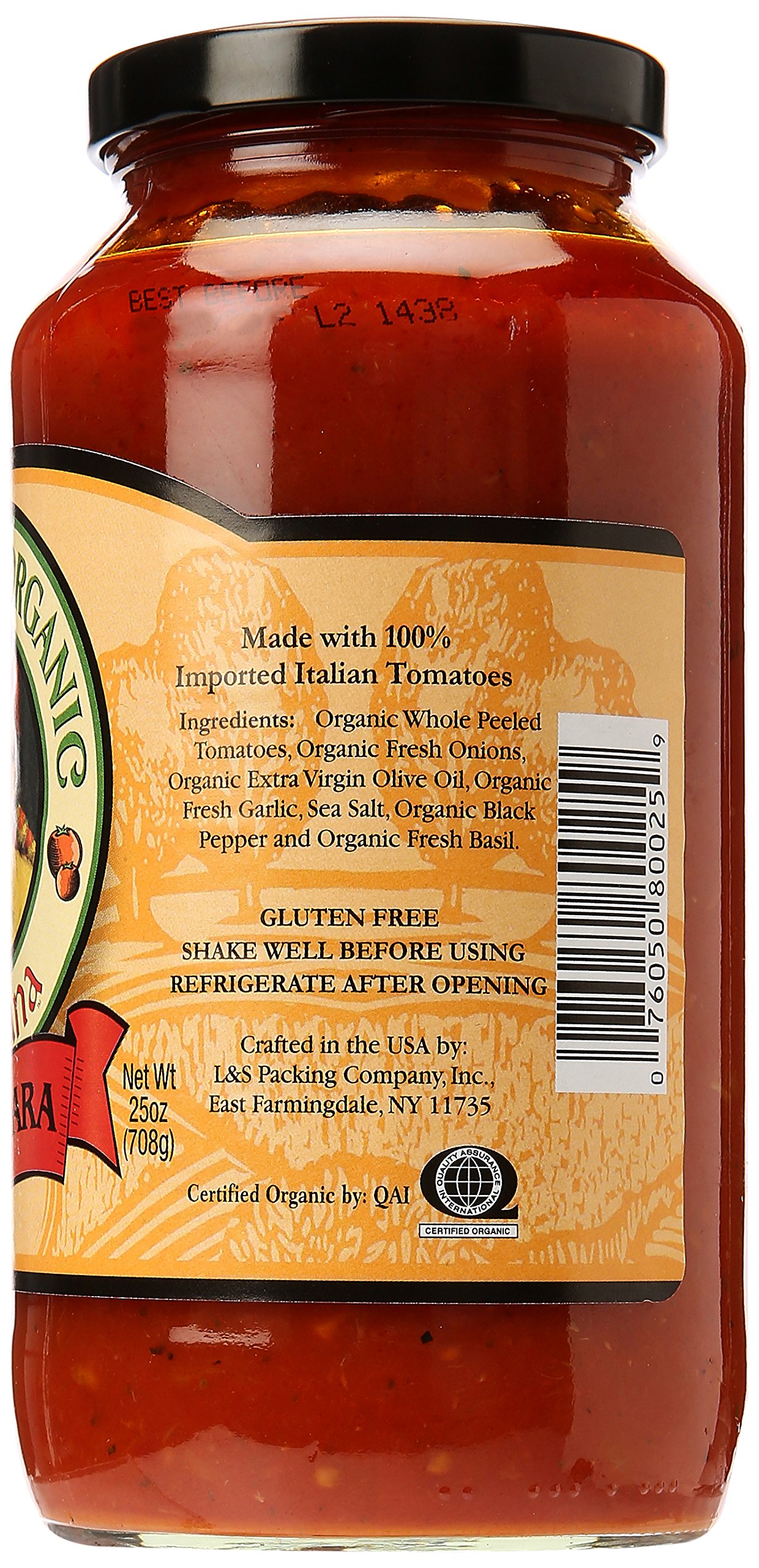 Premium Organic Marinara Sauce, Made with 100 percent Organic Whole Peeled Italian Tomatoes, Organic Fresh Onions, Organic Extra Virgin Olive Oil, Organic Fresh Garlic, Sea Salt, Organic Black Pepper and Organic Fresh Basil.