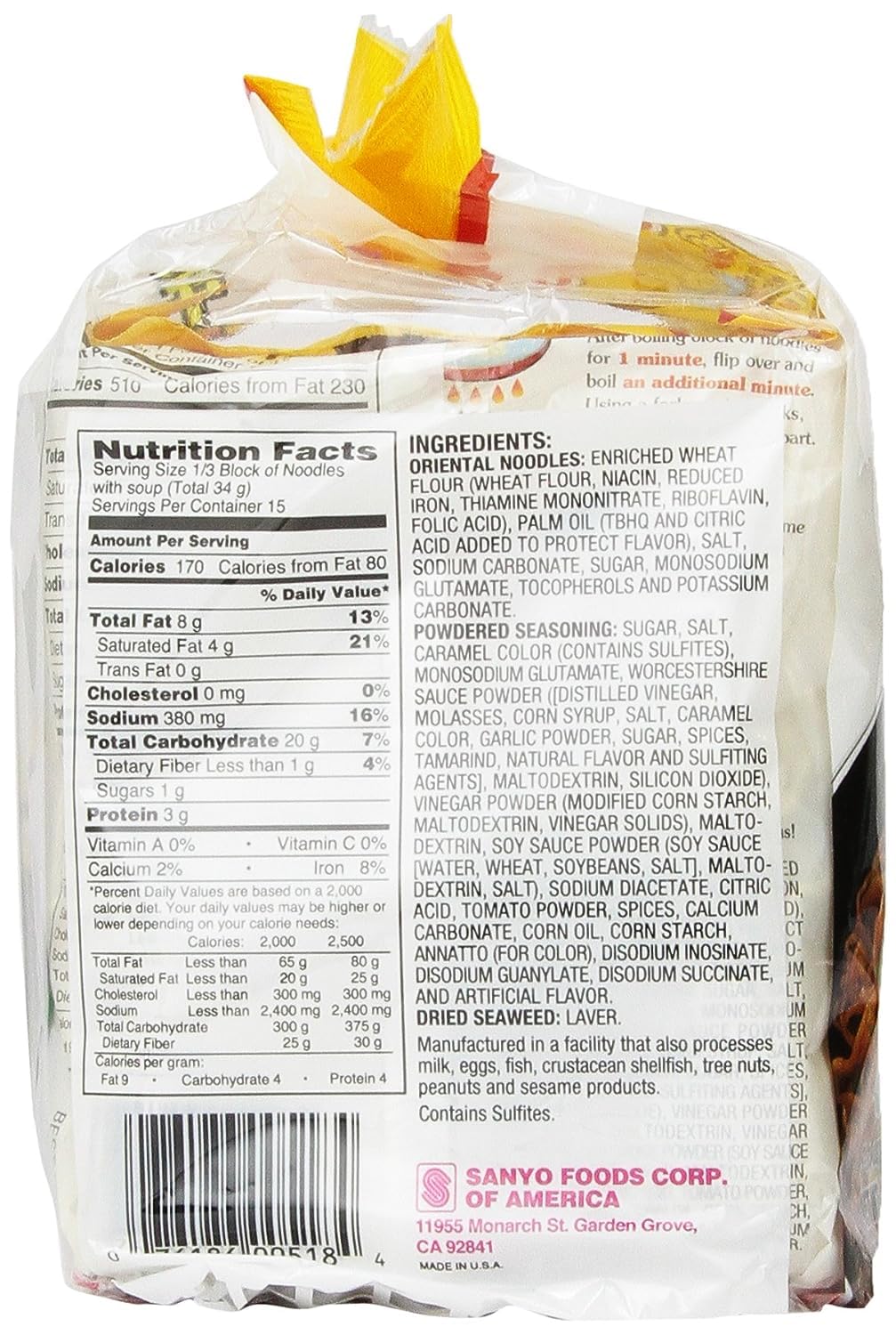 Traditional quality of Sapporo ichiban. Quick cooking. With natural and artificial flavors. Product of Japan.