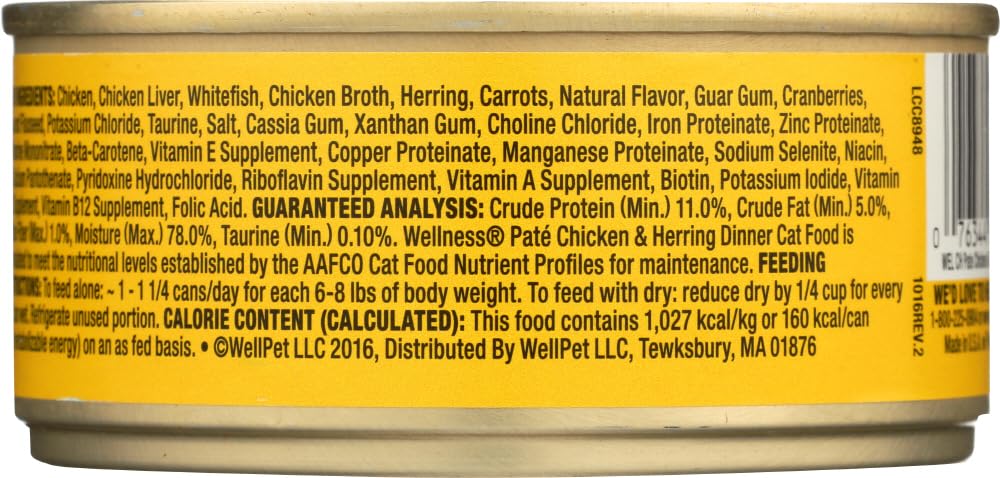 WELLNESS CAT FOOD CHKN & HERRING, 5.5 OZ