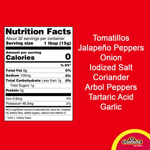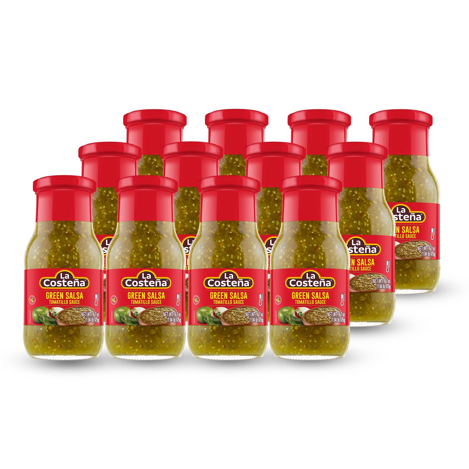 La Costeña Salsa Verde with Tomatillos, Jalapeños and Chile de Arbol Peppers, Medium Heat, 16.7 Ounce Jars (Pack of 12)