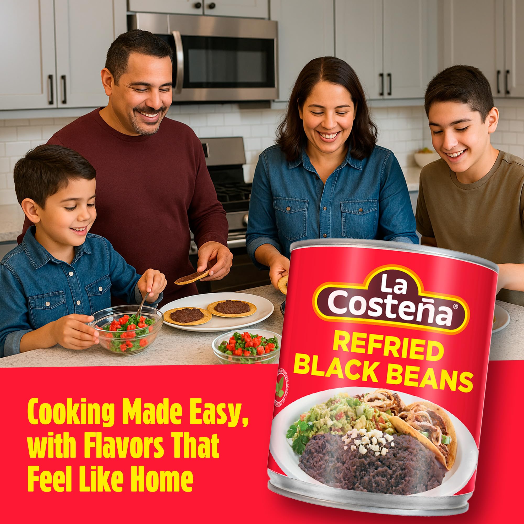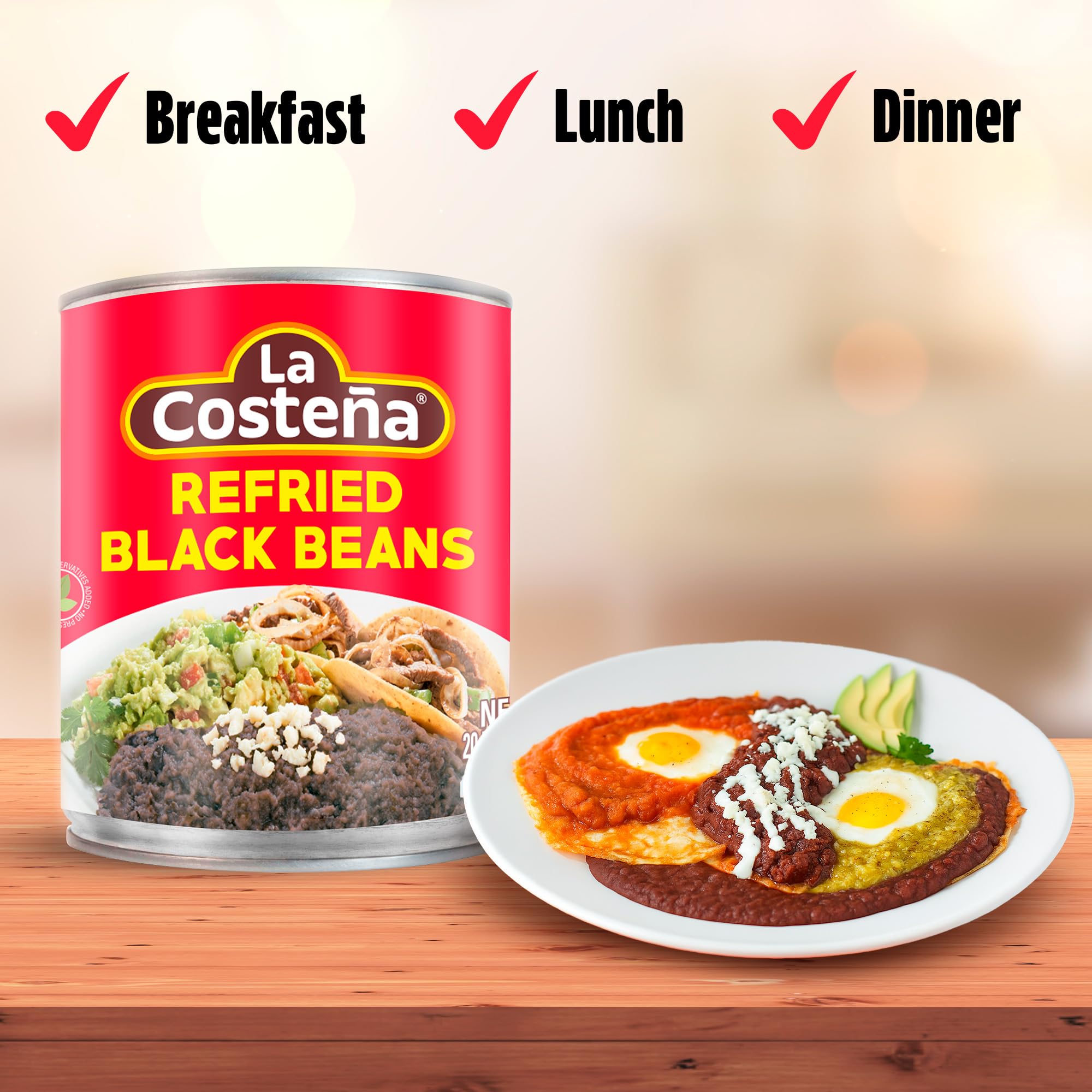 La Costeña Refried Black Beans - Ready-to-Eat Canned Refried Beans for Mexican Food, Mexican Rice, Nacho Bean Dip, Bean Burrito, Burger, Carne Asada, Fajita & Taco Seasoning - 20.5oz, 6 Pack Cans