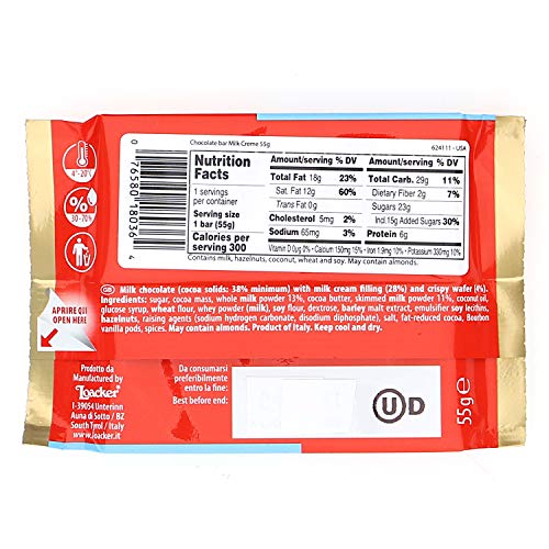 Loacker Chocolate Bar Specialty Milk Creme, 1.94 Ounces