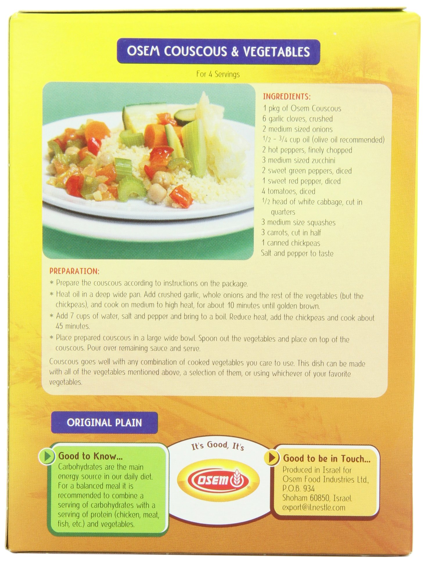 couscous is a small fluffy and tasty semolina wheat pasta. It is 100 percent natural. Couscous originates in North Africa and is now very popular in Israel. Couscous is made from steamed semolina, from the most nutritious part of the wheat. Osem offers medium couscous, which is the most popular form here in Israel. The products are made from natural ingredients only and are very nutritious. Availavle in a bag of 10 pounds. Osem has succeeded in convincing the American Jewish consumer to broaden the range of kosher products that they consume to include convenience foods such as ready-made cakes and personal dehydrated ready meals (manot hamot), health foods such as crackers and pasta, and middle eastern foods such as snacks like bissli and bamba. Osem is really benefiting from the increased demands.