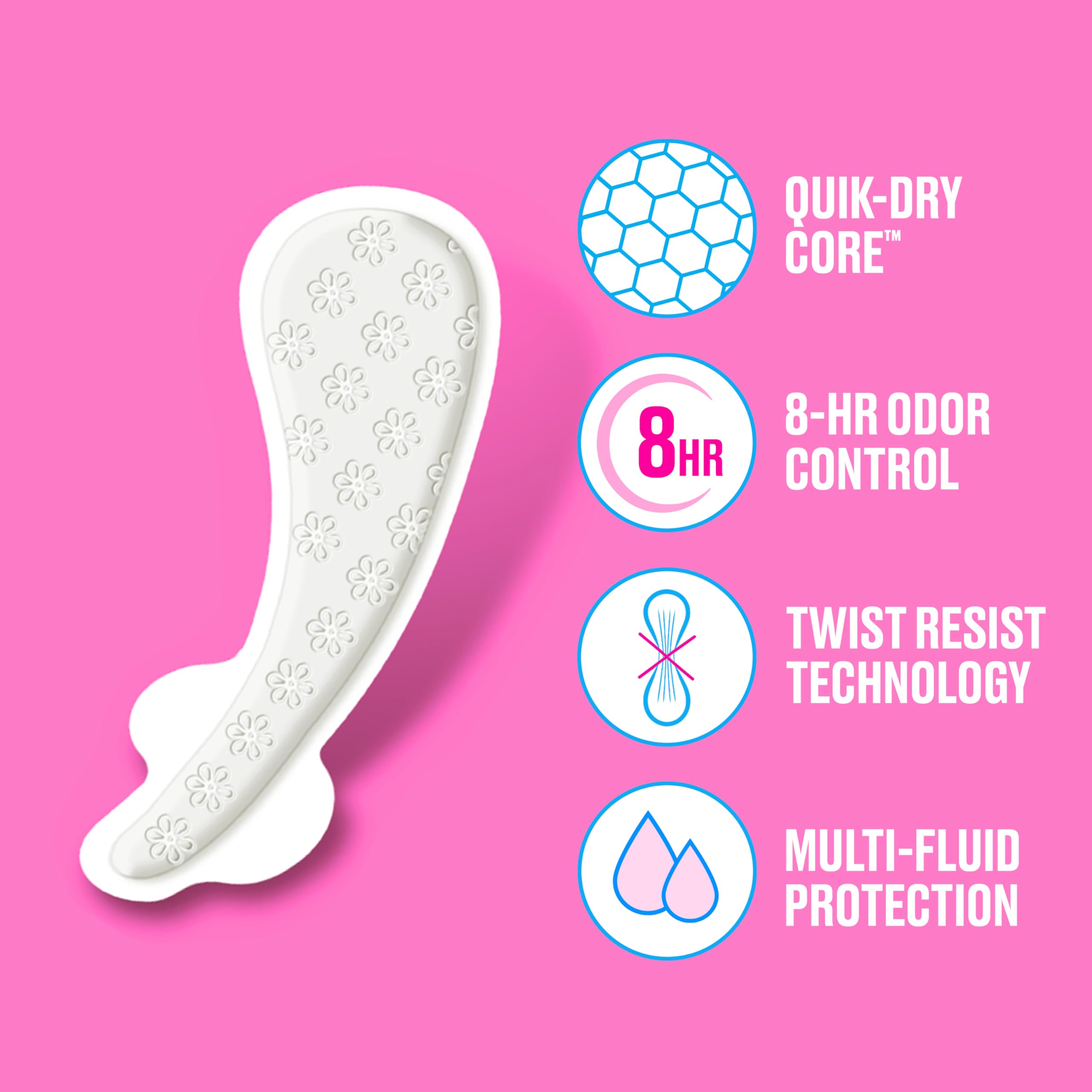 Introducing a whole new look for the Carefree brand you know and love. Carefree panty liners are designed to deliver comfort and multi-fluid protection against leaks, periods, odors, and everything in between. Carefree thong liners are discreet and made to fit thong underwear, to provide you confidence no matter what you wear. Stay-put wings keep your liner in place for a secure, no-shift fit, and end-to-end adhesive eliminates bunching. These liners for women can be used for every day freshness, odor control, sweat, unexpected periods, light days, tampon backup, leaks, and discharge.