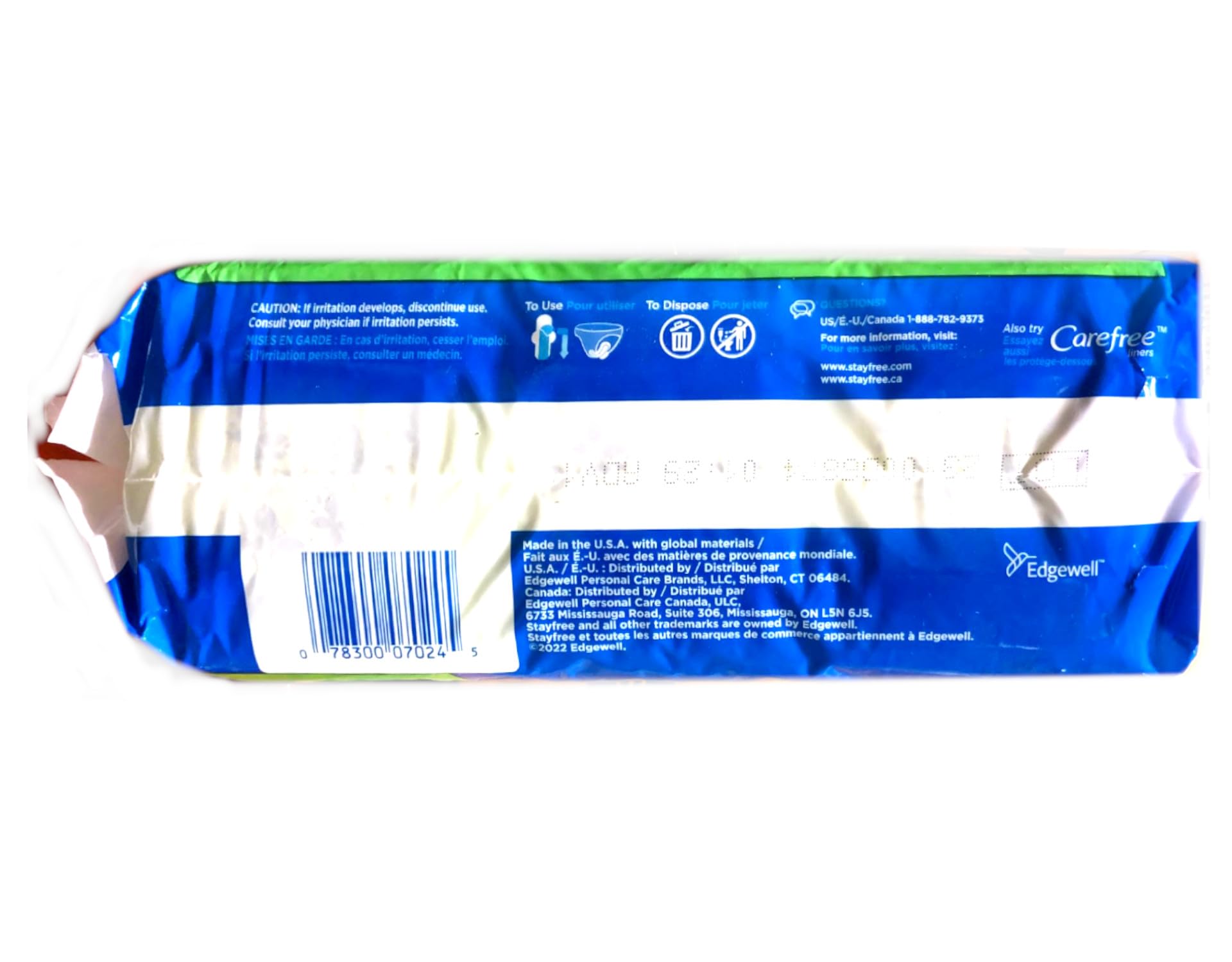 Get maximum protection during the day or overnight for heavier period flow. Soft, quick-absorbing material provides maximum comfort and all day freshness. Stayfree pads are made to stay in place with a special shape that is designed to contour to a woman's body even without wings. Our adhesive gently secures the pad to panties to ensure a secure, no-shift fit. Focus on life, not leaks with four-wall protection against front-to-back and side-to-side leaks. MAXIMUM PROTECTION for day or overnight heavy menstrual period flow FOUR WALL PROTECTION with 18 anti-leak channels help block leaks from front-to-back and side-to-side so you can worry less about leaks and focus on your day INCREDIBLY SOFT COVER for maximum comfort throughout even your heaviest days QUICK ABSORBING quilted cover keeps fluids away from your body so you feel as natural as possible NEUTRALIZES ODORS so you can go through your day with confidence and without changing your routine.