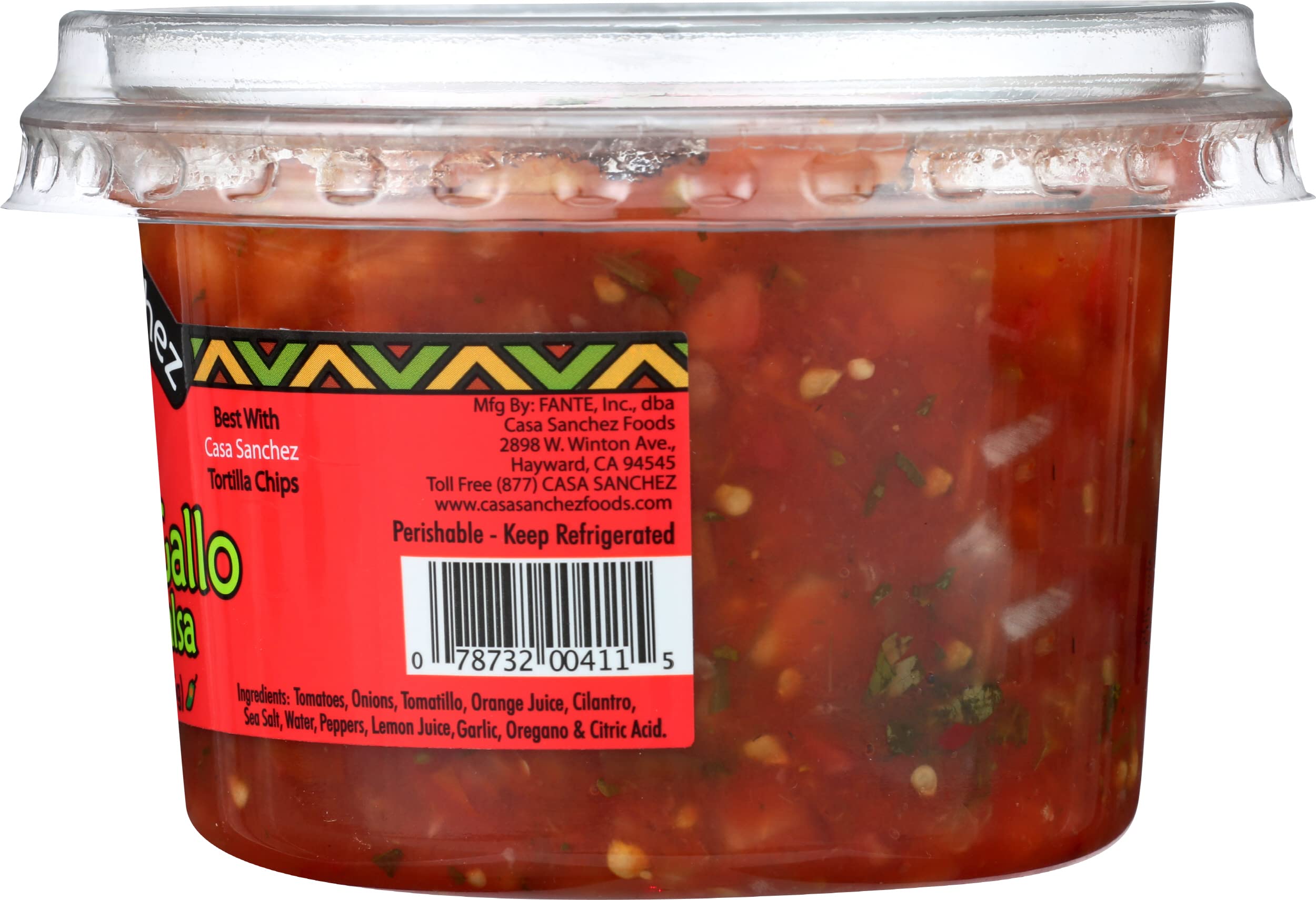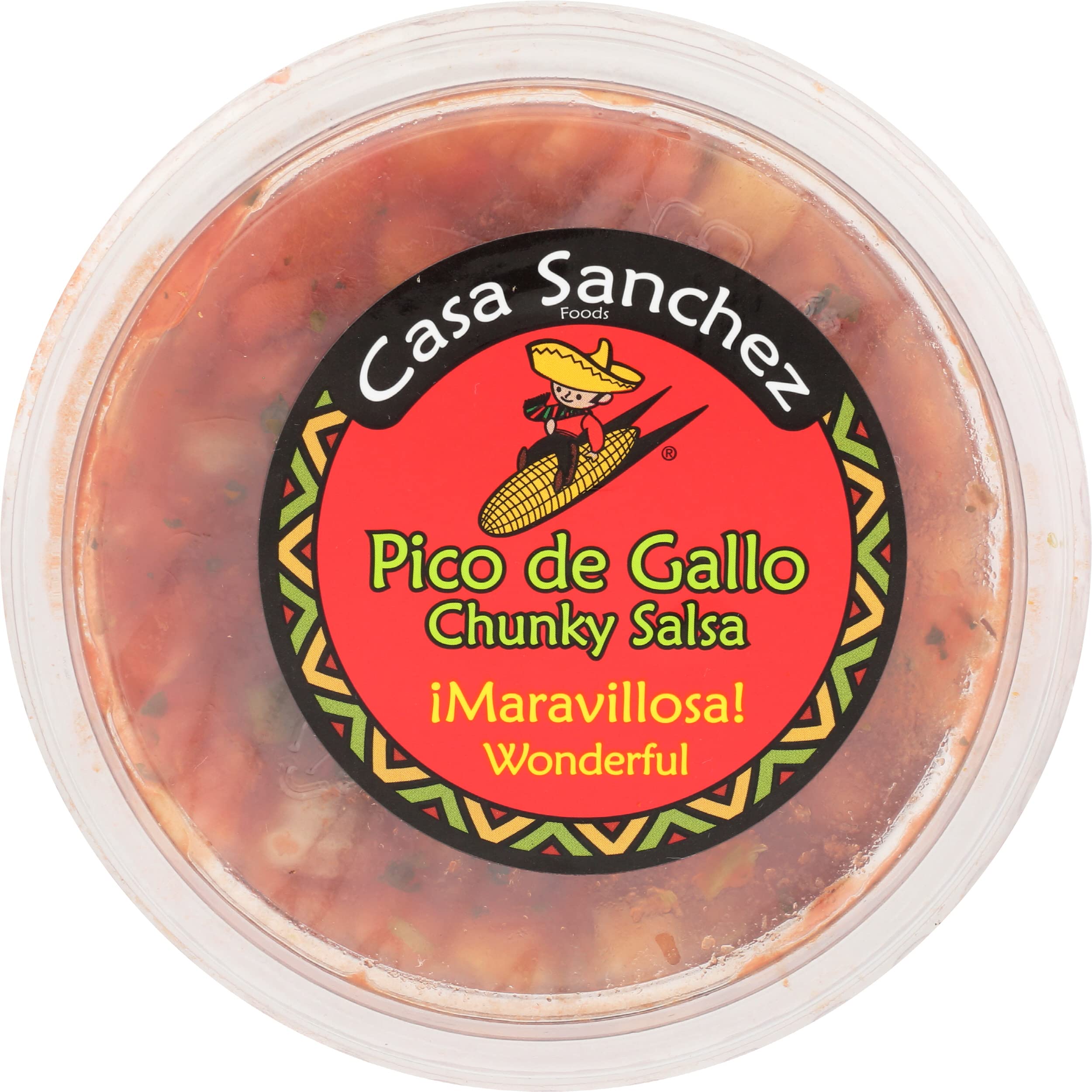Casa Sanchez foods pico de gallo chunky salsa gets its fresh, delicious flavor from a combination of tomatoes, onions, tomatillo, garlic, cilantro and seasonings. Serve this recipe up with crispy tortilla chips, or use it as a topping for burritos, tacos and quesadillas. With its perfectly chunky texture, this salsa also makes a unique addition to hot dogs, sausages and burgers. Packaged in a 15 ounce resealable tub, this pico de gallo salsa is easy to serve at parties.