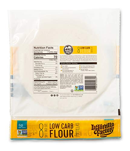 La Tortilla Factory Low Carb Flour Tortillas, 6g Net Carbs, 70 Calories, Non-GMO, Soft Taco Size - 7", 8-Count, 11.8 oz