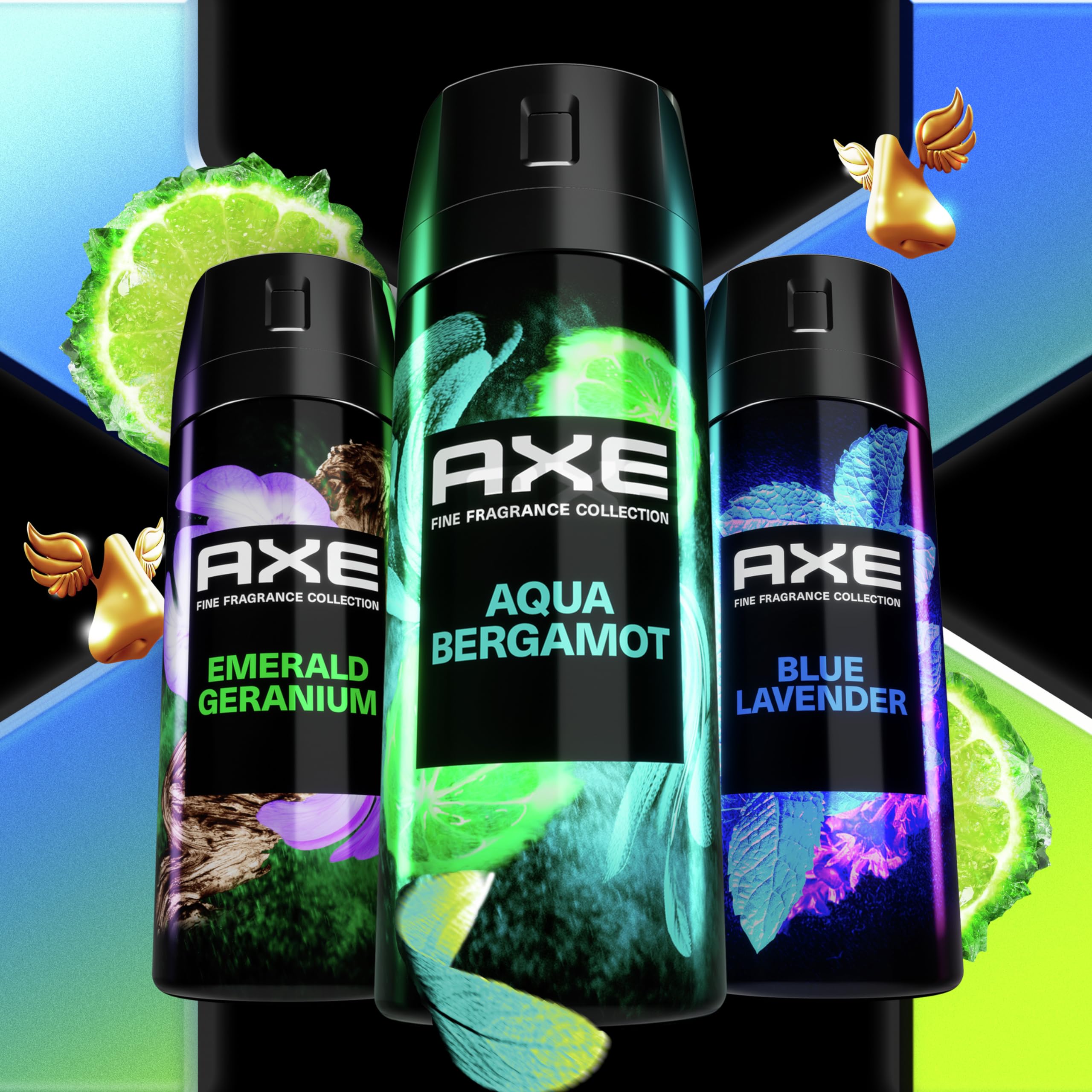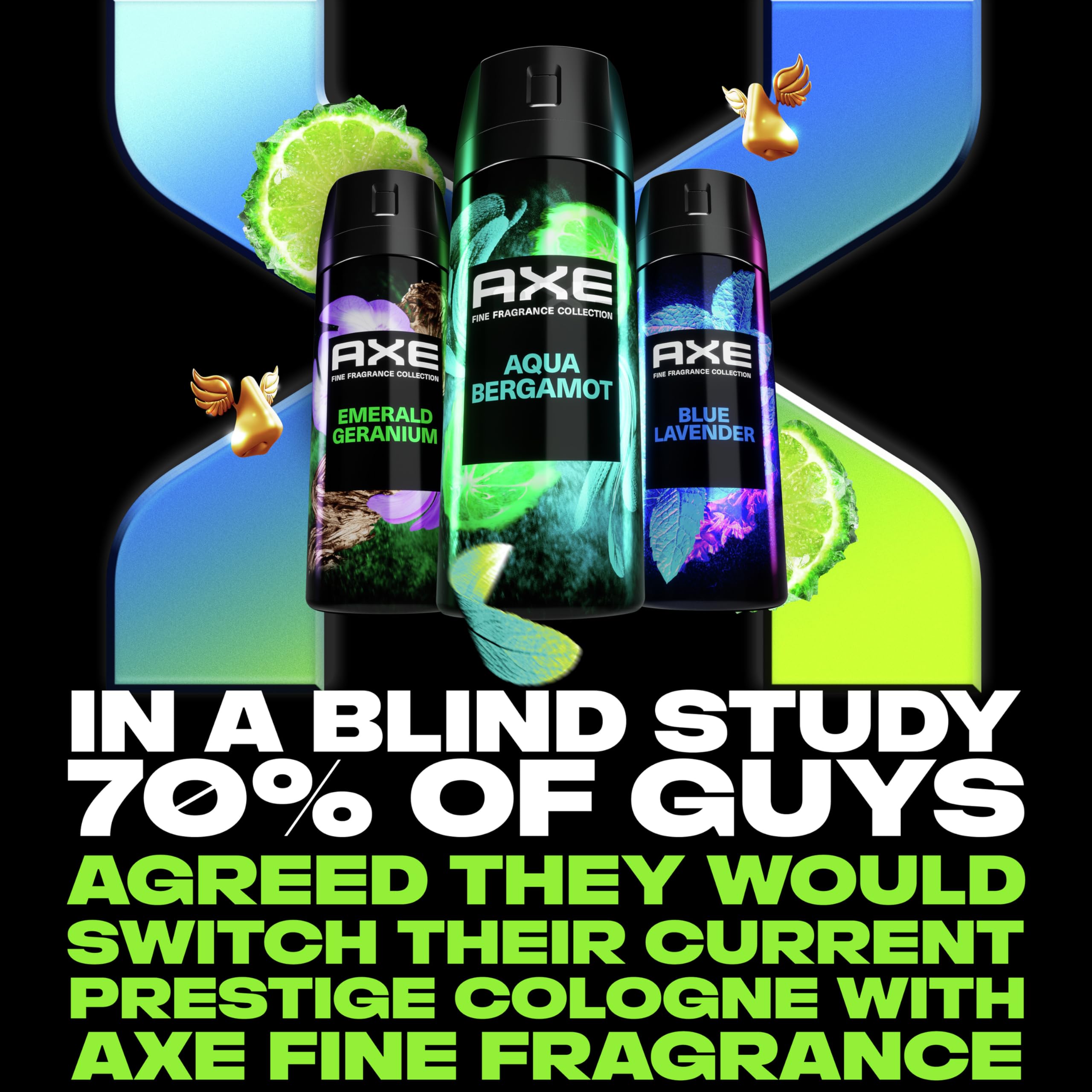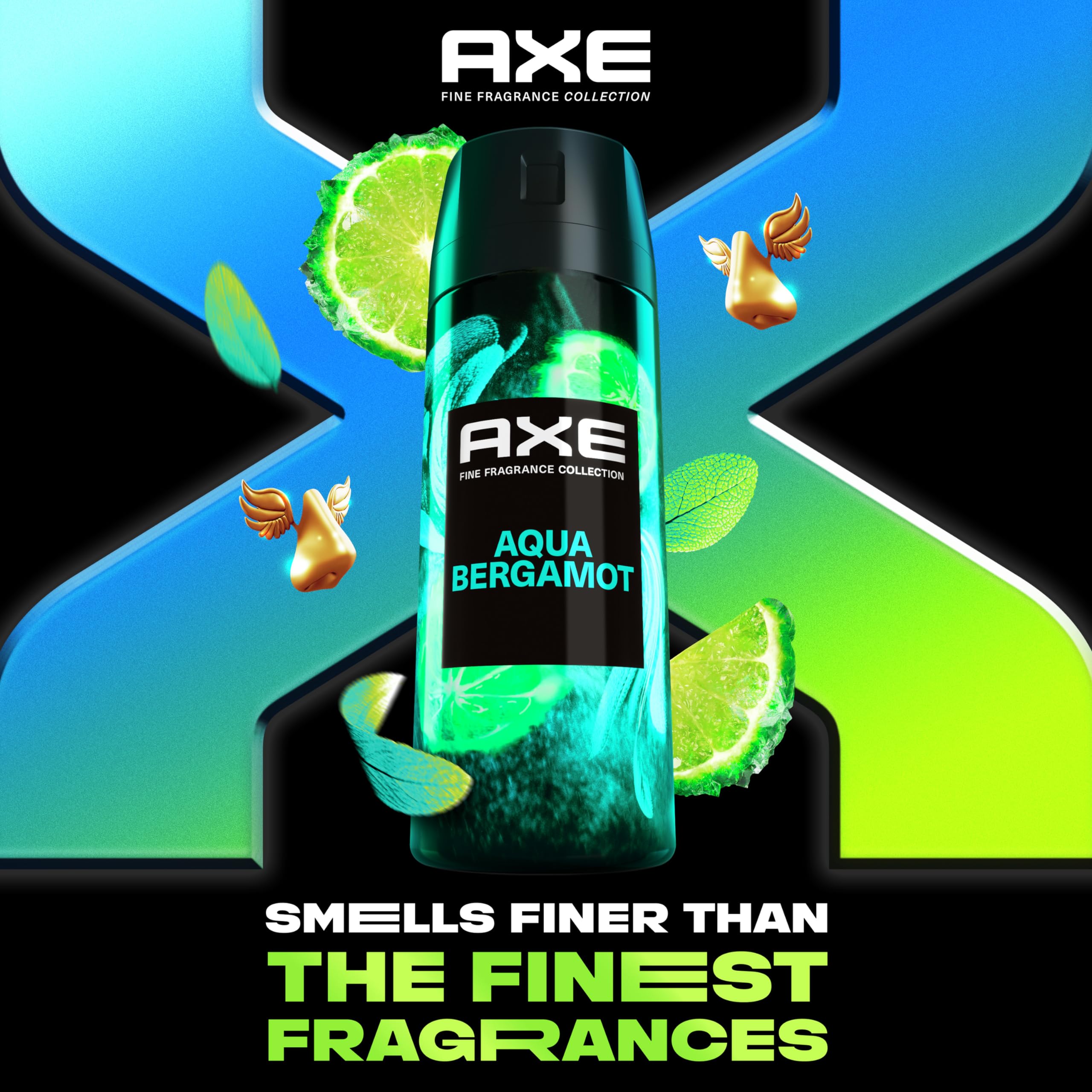 Smell finer than fine fragrances with the G.O.A.T, The NEW AXE Fine Fragrance Collection. 70% of guys in a blind study said they’d replace their fine fragrances with their favorite scent from the AXE Fine Fragrance Collection among Blue Lavender, Aqua Bergamot, and Green Geranium. Surprised? We’re not. Our world-renowned perfumers have produced a top-tier banger in this Aqua Bergamot Premium Deodorant body spray for men, with an exhilarating fresh scent infused with bergamot, sage, and juniper essential oils. Everyone deserves a hype man, so we made one in fragrance form. In just a few spritzes of this deodorant spray, you’ll have 72 hours of freshness and unbeatable confidence. With 2X more odor-busting Zinc technology than our standard body spray, we’re out here working smarter, not harder. This body spray is formulated with an aluminum-free formula that hits different, is easy on the skin, tough on odor, and is instantly refreshing. We really thought of everything. Vibing with the Aqua Bergamot Deodorant Body Spray? Check out AXE Fine Fragrance Collection Aqua Bergamot Deodorant Stick and AXE Fine Fragrance Collection Aqua Bergamot Body Wash to stay fresh as ever. That's the AXE effect. IYK, YK. Let’s get it.