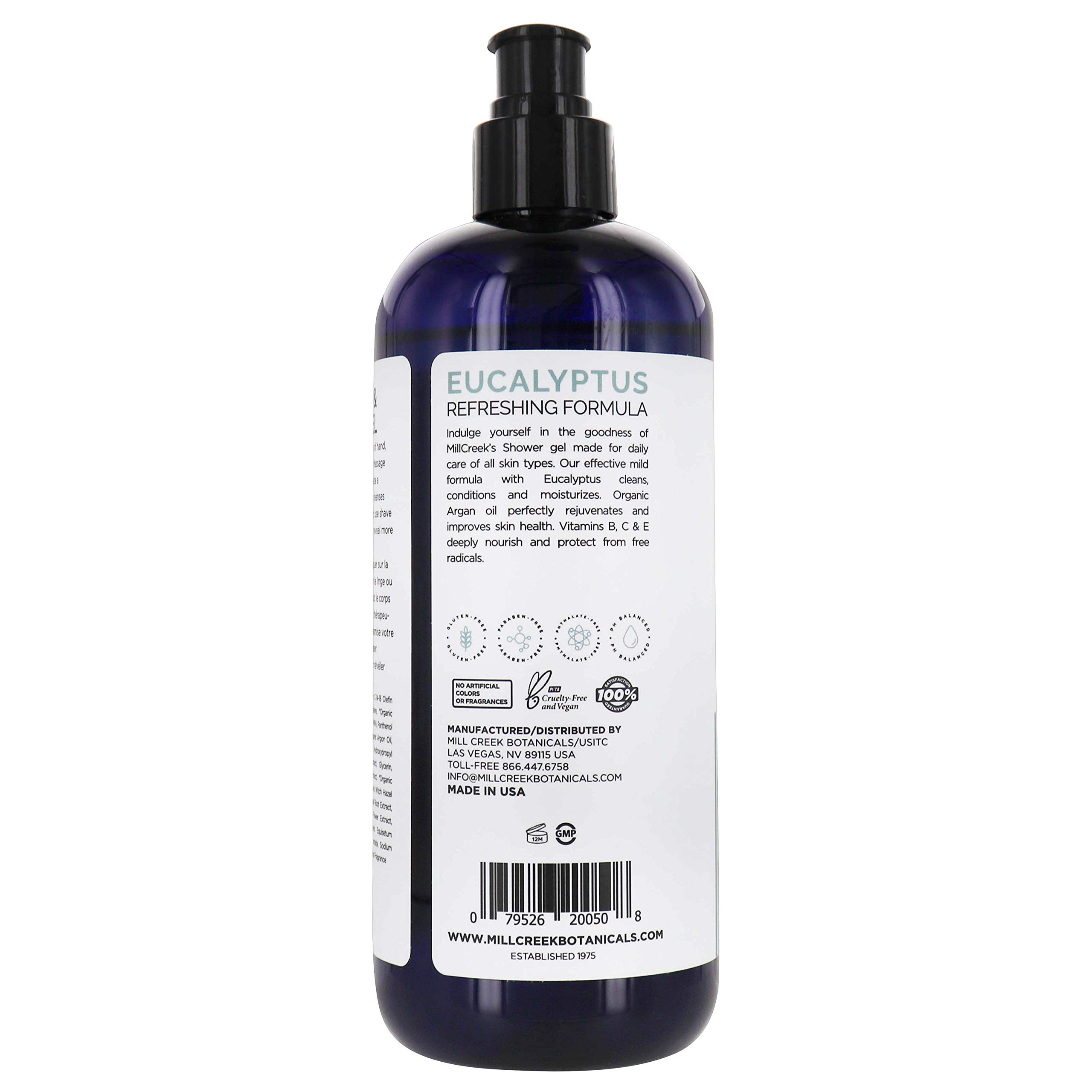 Pamper your skin with Mill Creek's Shower Gel, designed for daily use on all skin types. Our gentle yet effective formula, infused with Eucalyptus, cleanses, conditions, and hydrates. Organic Argan oil revitalizes and enhances skin health, while Vitamins B, C, and E deeply nourish and shield against free radicals.
