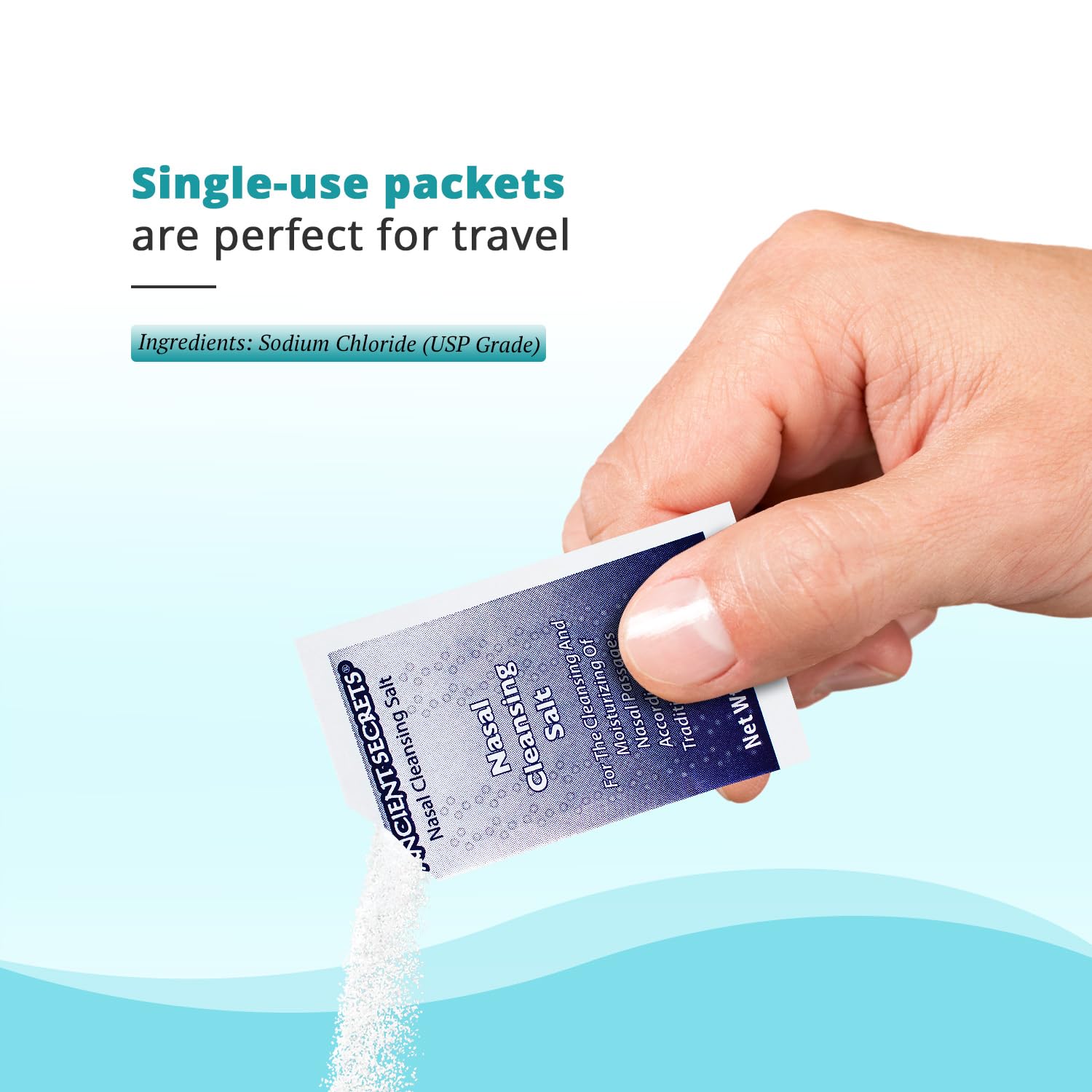 Ancient Secrets Nasal Cleansing Salt, Non-Iodized, 3-Pack – USP-Grade Sodium Chloride, 40 Pre-Measured Packets per Box for Any Neti Pot, Sinus Irrigation System + Bonus Pack