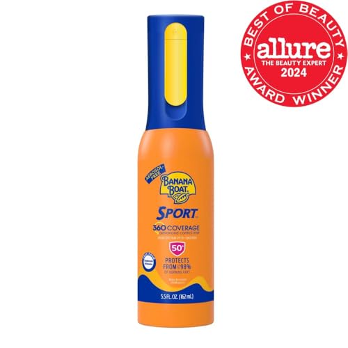 Banana Boat 360 Coverage Sport Sunscreen Mist SPF 50 | Refillable Bottle, Spray Sunscreen SPF 50, Non-Aerosol Sunblock, 360 Coverage Spray, 5.5Fl Oz