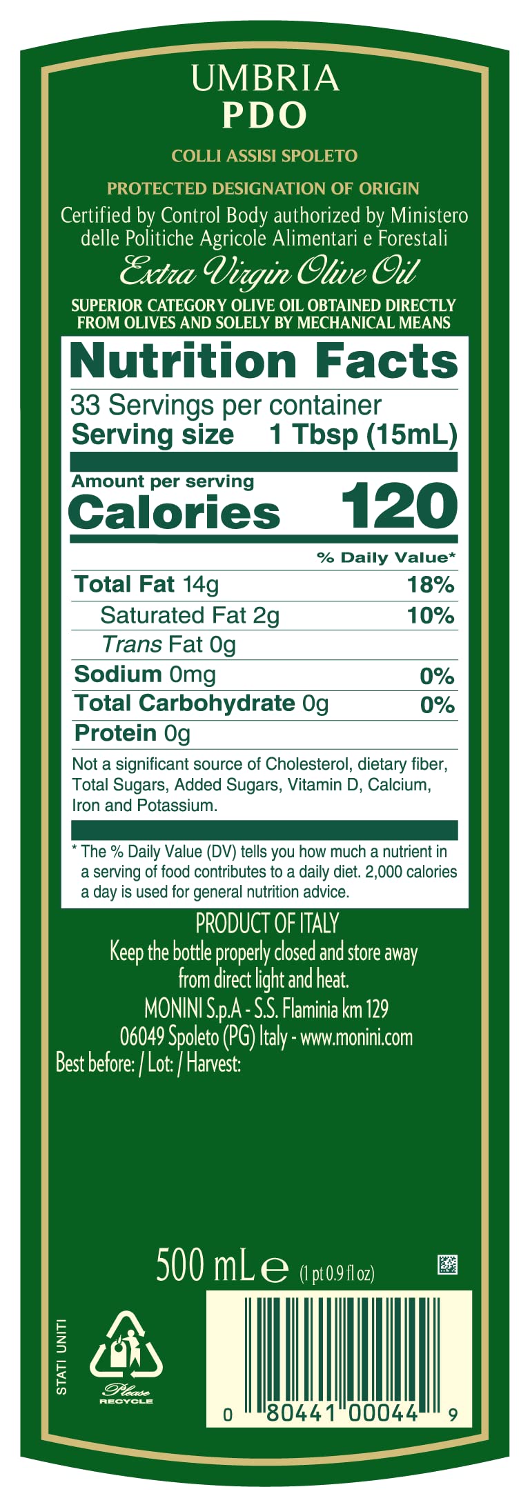 Monini Dop Umbria Extra Virgin Olive Oil, 16.9 oz